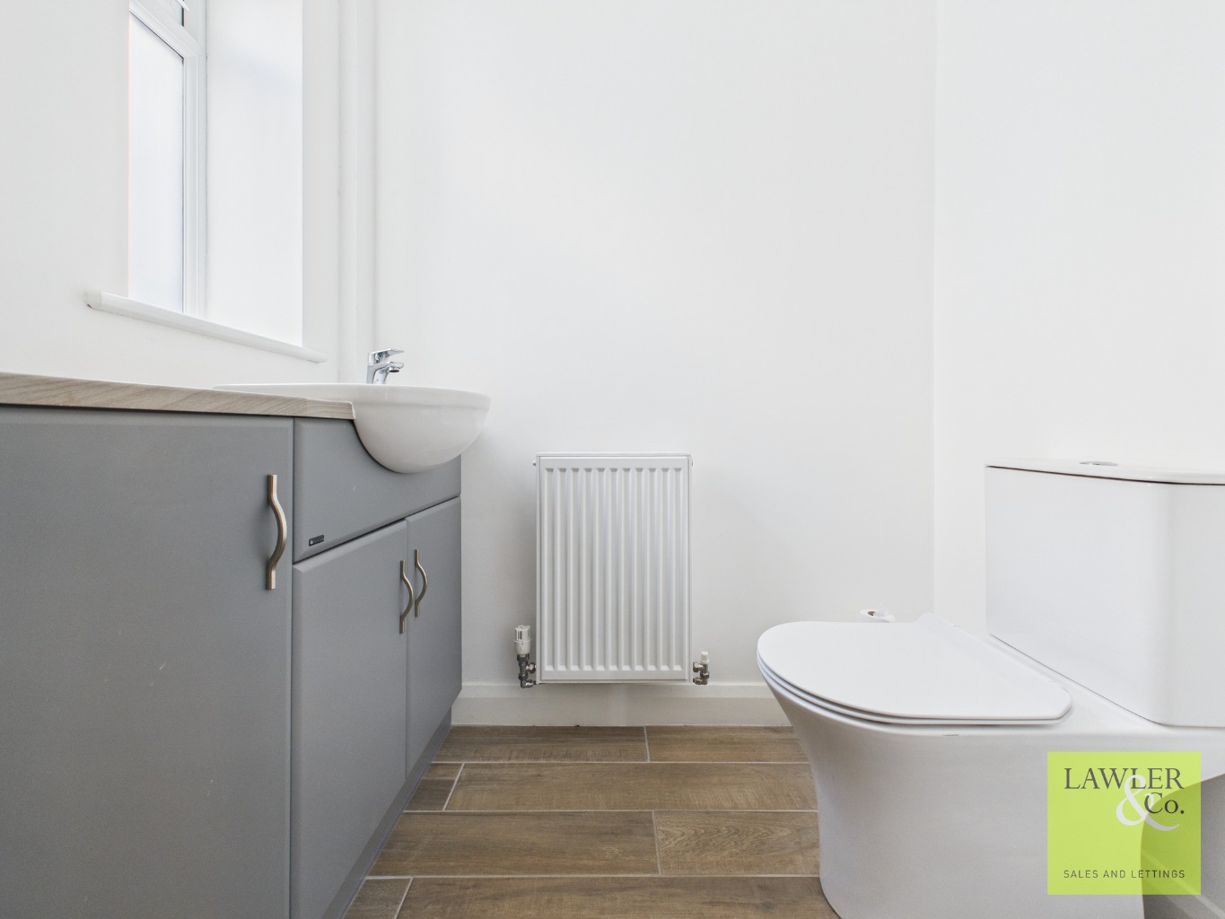 Upstairs, there are two generous double bedrooms and a single, with the main bedroom overlooking the rear garden. The family bathroom features a modern white suite with a shower over the bath.