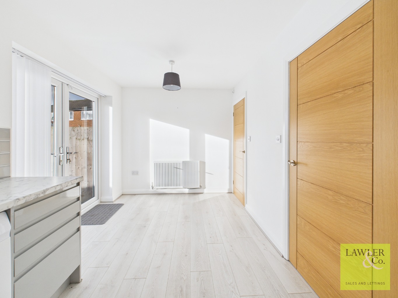 Step inside to a welcoming hallway with space for coats and shoes and a convenient ground-floor WC. The lounge is bright and cosy, perfect for relaxing evenings or family movie nights. To the rear, the kitchen/diner is the heart of the home, offering plenty of space for appliances and a dining table for six. Patio doors open onto the garden, blending indoor and outdoor living, while an under-stairs cupboard provides useful extra storage.