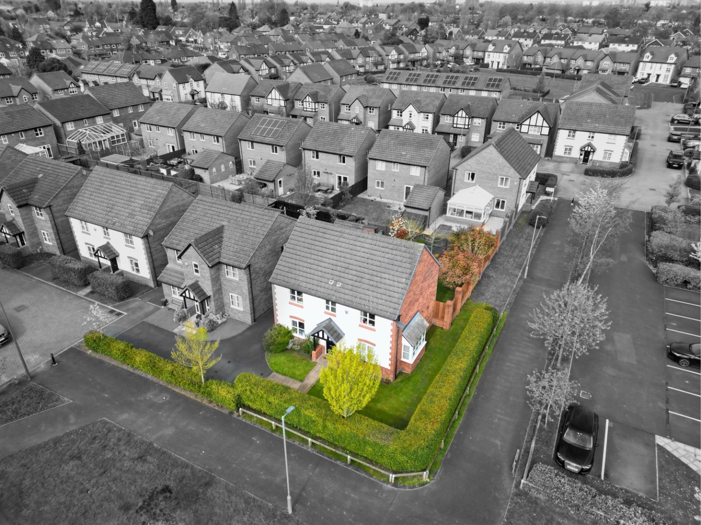 As you approach the property, you are welcomed by a private driveway and beautifully presented wrap-around garden. Stepping inside, the hallway gives immediate access to a convenient downstairs WC. To the left, you’ll find a generous full length lounge featuring French doors opening onto the rear garden, filling the room with natural light. To the right, the impressive open-plan kitchen diner is perfect for family living and entertaining. The dining area boasts a feature bay window with a built-in sitting bench and useful storage beneath, while the kitchen itself is fitted with a range of eye- and base-level units. A separate utility room provides further practicality, along with access to the garden.