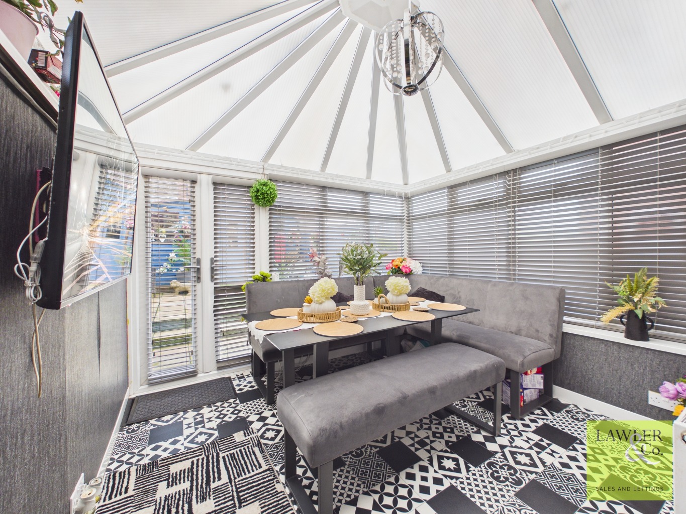 Upon entrance through the porch, a spacious hallway offering under-stair storage; a downstairs WC with space to use as a utility and follows through to the open plan living-kitchen area, a contemporary space designed for both everyday family life and entertaining. Adjacent to this, a spacious conservatory extends the living area, providing an additional reception room and access to the rear of the property; perfect for enjoying the garden views throughout the year.