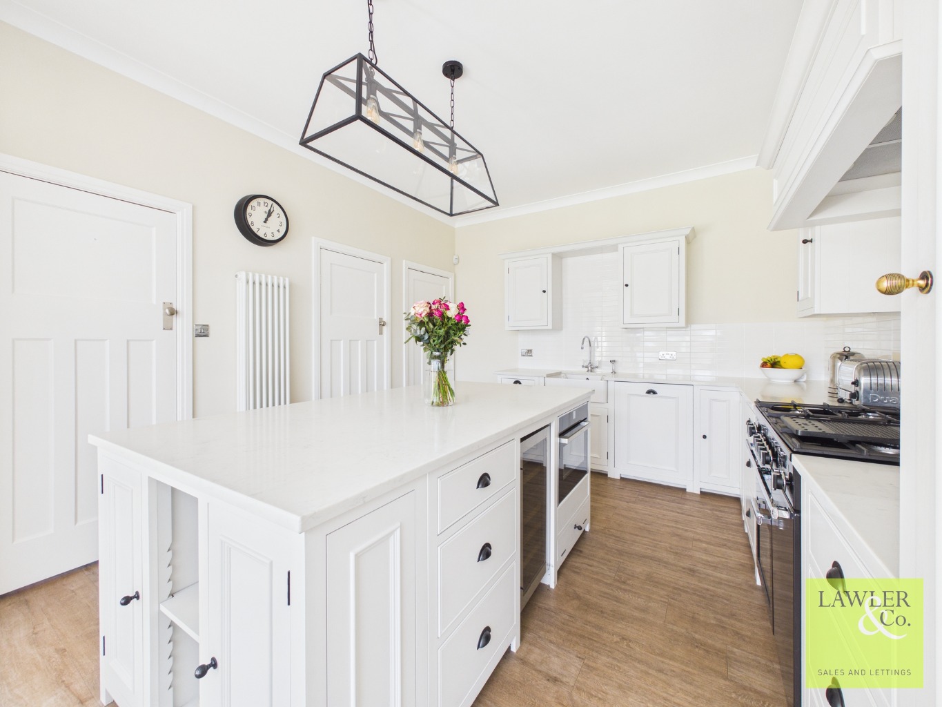 From the storm porch, step into an inviting hallway through a timeless stained-glass doorway, where classic tiled flooring sets the tone for the elegance beyond. To the front, the beautiful lounge is a perfect balance of cozy and bright, with a charming bay window flooding the room with natural light and enhancing its warm, welcoming atmosphere. From here, you are led into the immaculate open-plan living, dining, and kitchen space. The kitchen showcases elegant shaker-style units, complemented by luxurious marble worktops and a central island that provides the perfect space for dining. A range of integrated appliances includes a fridge, microwave and dishwasher along with space for a Rangemaster-style cooker with integral pantry space. A set of steps leads down into the extended living area, where a striking atrium-style window and dual-aspect outlook allows plenty of natural light. French doors open onto the garden, creating an effortless indoor-outdoor flow. Completing the ground floor is a separate utility area, offering space for white goods and convenient side access to the garden. There is also a further WC with a hand wash basin located just off the hallway, along with access to the ground floor cellar—ideal for additional storage. This layout has been thoughtfully designed and reconfigured by the current owner to create a seamless and practical flow for everyday living.