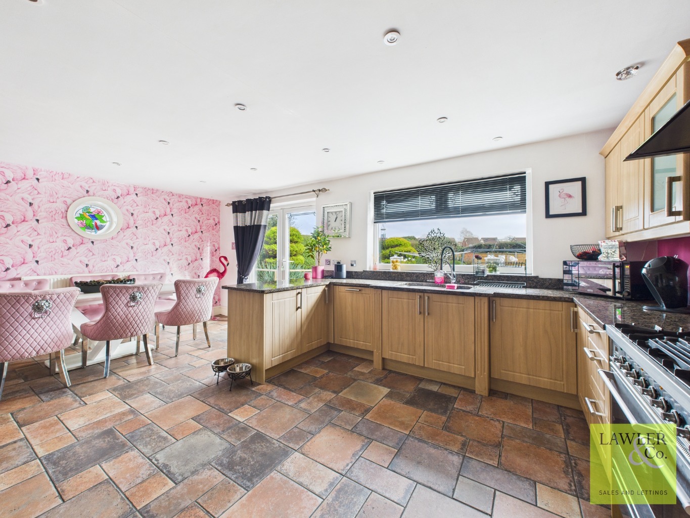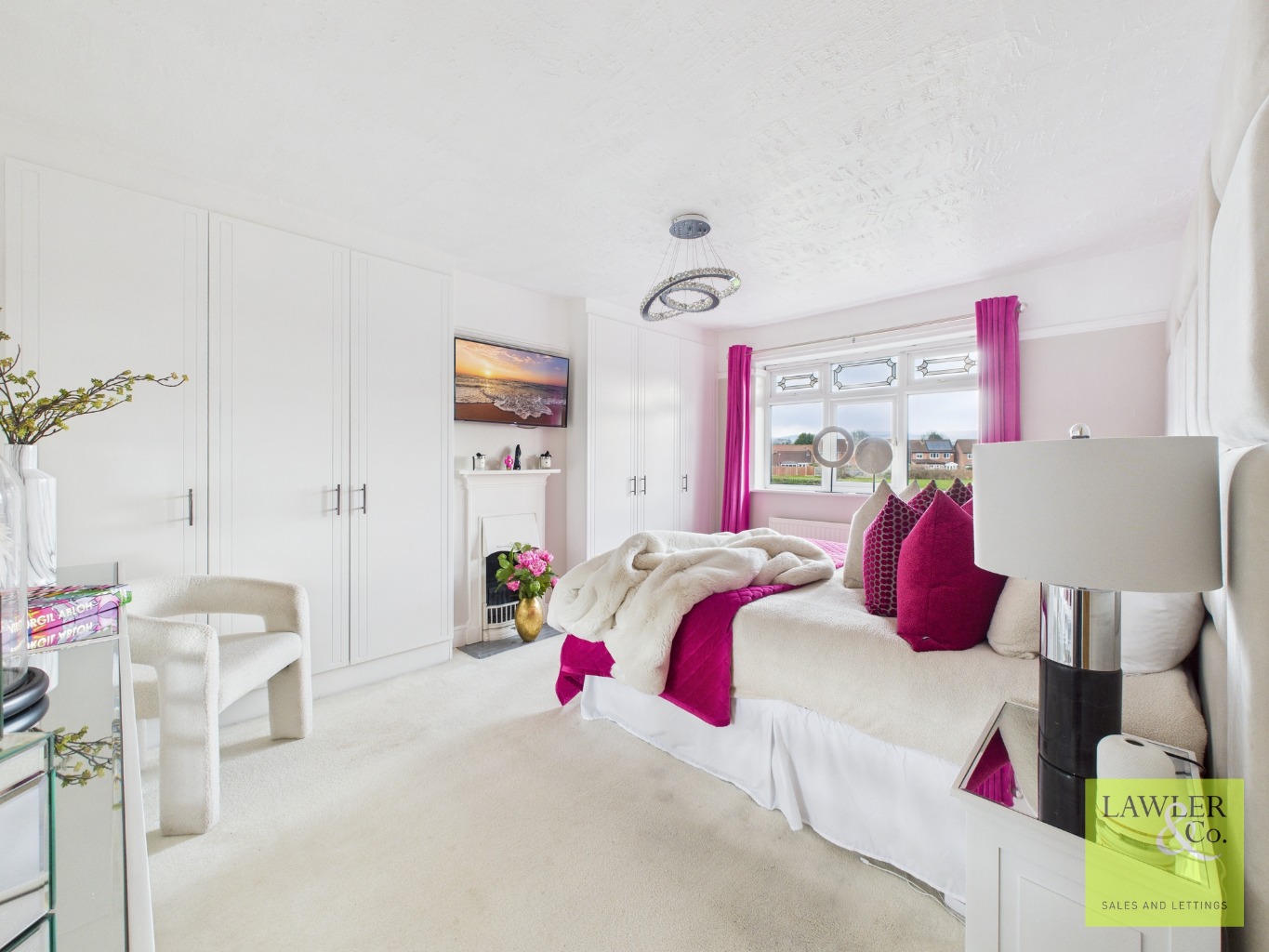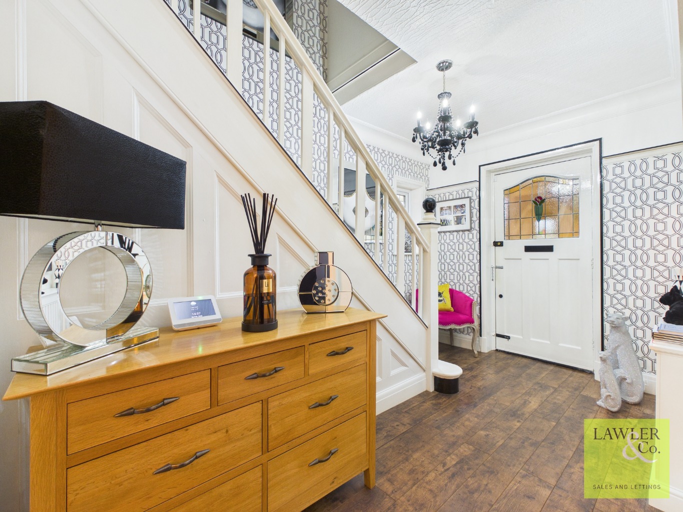 Step inside this beautiful family home, where modern living meets everyday comfort. Accessed via the porch, you are welcomed into an inviting entrance hallway that immediately sets the tone for the rest of the property. The ground floor boasts four well-proportioned reception rooms, offering exceptional flexibility for entertaining, relaxing, or working from home. To the front of the property is a versatile reception room featuring a characterful bay window and an ornamental fireplace. Flowing through, the cozy main living room enjoys a gas fireplace and direct access to the rear garden, creating an ideal space for family living. From here, an additional adaptable room provides the perfect setting for a concealed television, complemented by useful under-stairs storage. Leading off this is a further flexible space to suit a variety of lifestyle needs, currently used as a cinema room with bay window. At the heart of the home lies a stunning open-plan kitchen and dining area, thoughtfully designed to create a bright, sociable environment ideal for both everyday living and entertaining guests. Completing the ground floor accommodation is a practical utility room and a convenient downstairs WC with wash basin and further access to the side.