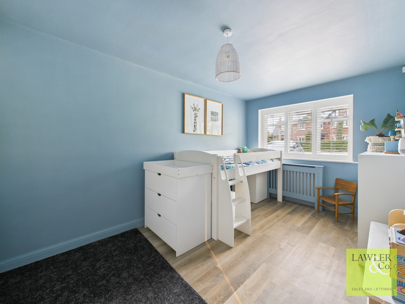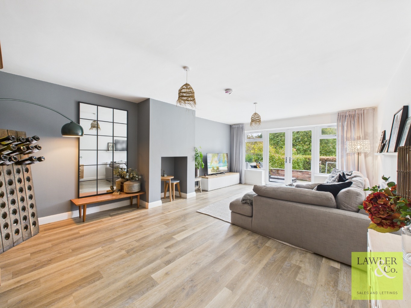 There is a separate most attractive lounge with French doors affording further views over the garden. There are three generous bedrooms positioned to the front of the property. Two of which include feature bay windows, with the master benefitting from walk in dressing area with custom made storage leading to the ensuite bathroom. The Porcelanosa tiled ensuite with under floor heating include walk in shower, floating sink and WC. The main family bathroom suite is of generous size and is also complimented by Porcelanosa tiles and under floor heating. Including bath, shower, floating sink and WC. There is also a separate WC and sink and two storage cupboards off the hallway.