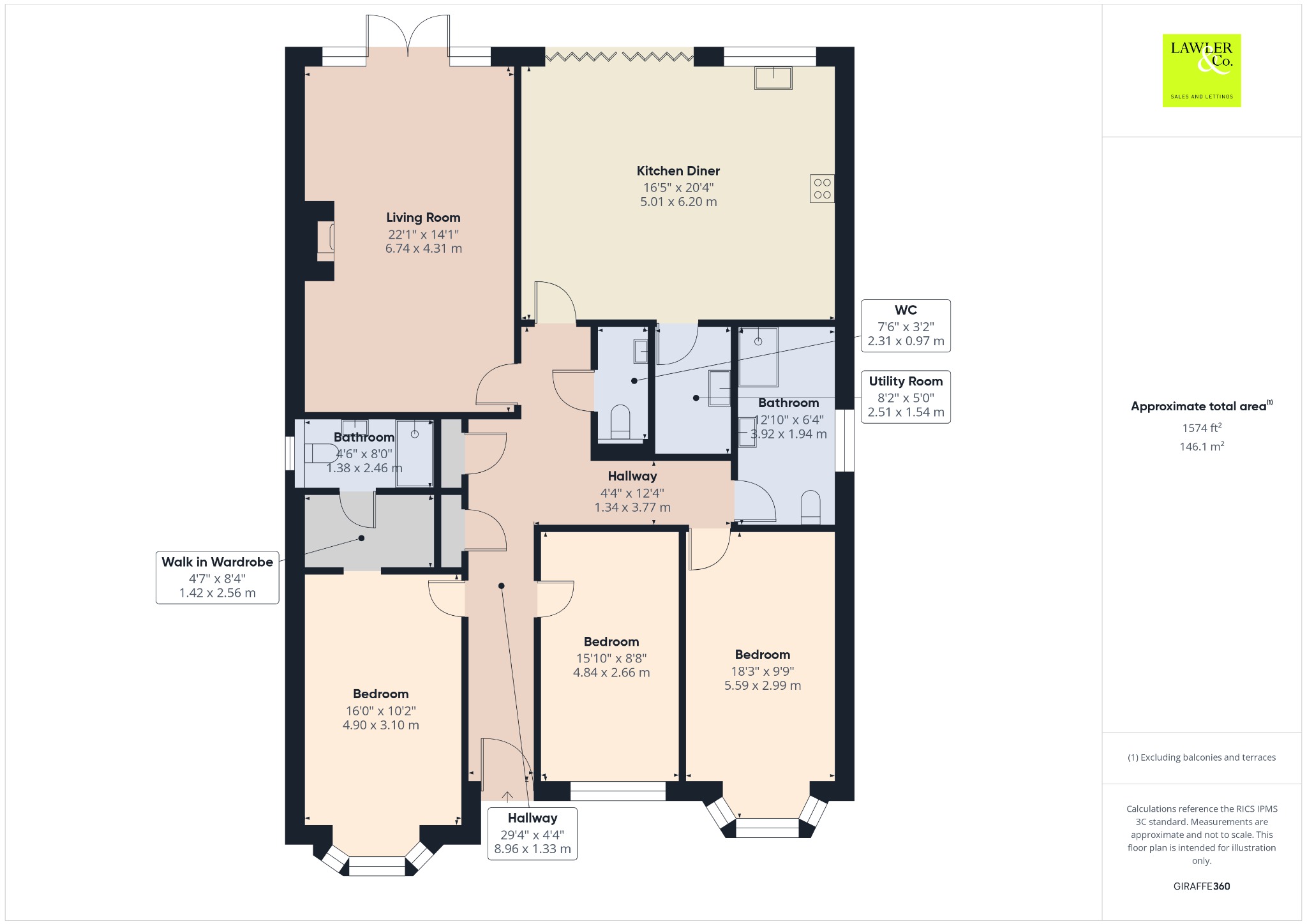 There is a separate most attractive lounge with French doors affording further views over the garden. There are three generous bedrooms positioned to the front of the property. Two of which include feature bay windows, with the master benefitting from walk in dressing area with custom made storage leading to the ensuite bathroom. The Porcelanosa tiled ensuite with under floor heating include walk in shower, floating sink and WC. The main family bathroom suite is of generous size and is also complimented by Porcelanosa tiles and under floor heating. Including bath, shower, floating sink and WC. There is also a separate WC and sink and two storage cupboards off the hallway.
