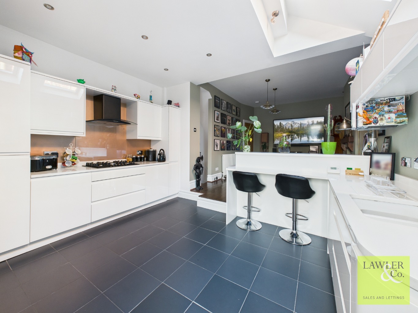 You enter on the ground floor into a welcoming hallway. To the front, the main living room is bright and inviting, with high ceilings and a large bay window making it the perfect place to relax after a long day. Moving through to the rear, the house opens into a stunning kitchen diner that truly acts as the heart of the home. With integrated appliances, underfloor heating and high-quality finishes, it’s easy to imagine busy mornings, relaxed family meals and entertaining friends all in one sociable space.