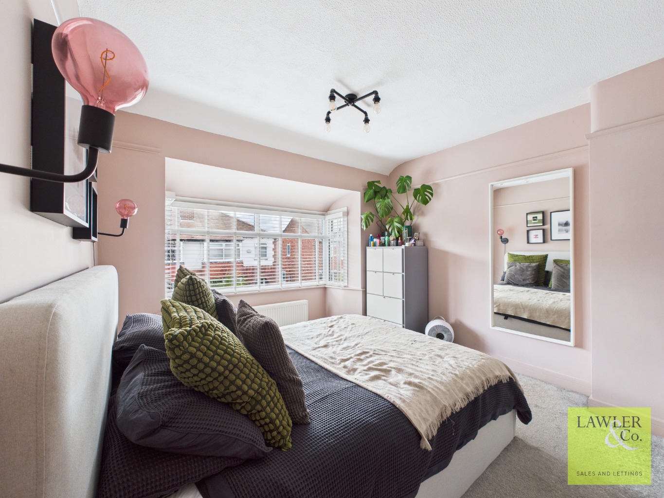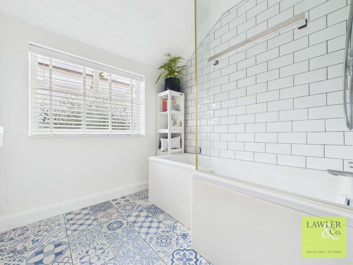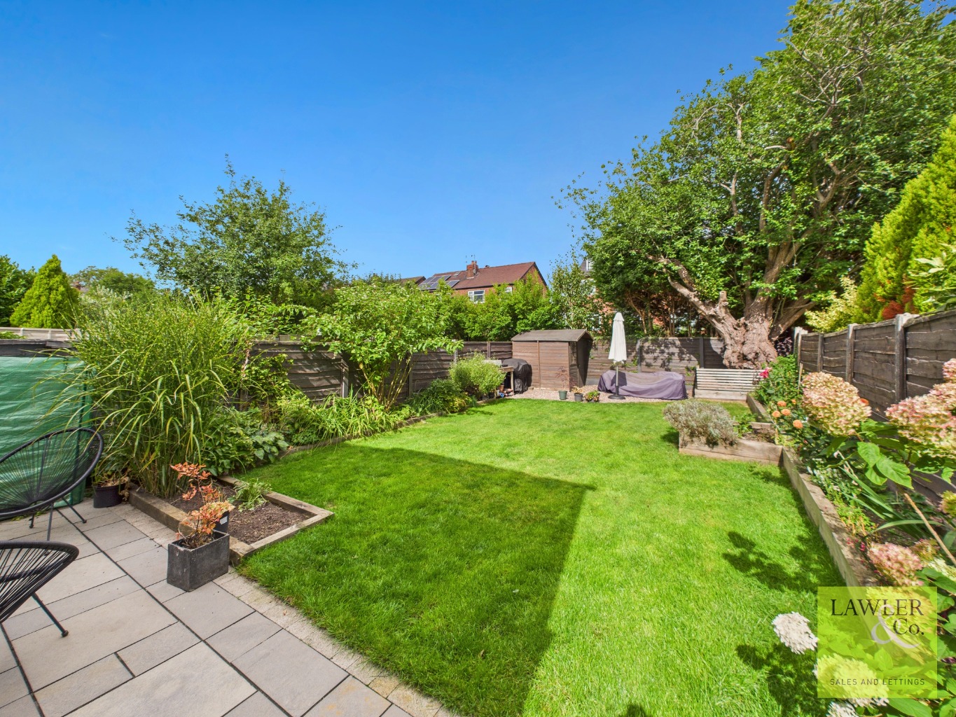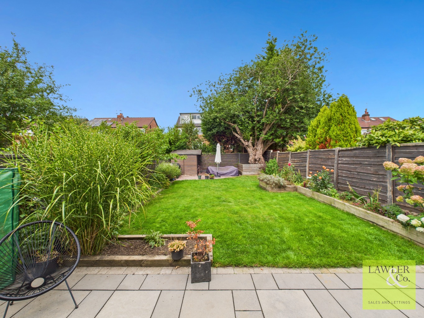 At the rear of the property, you’ll find a beautifully landscaped garden designed for both relaxation and entertaining. A paved patio area, accessible directly from the reception room, offers a seamless indoor-outdoor flow; perfect for al fresco dining. The garden boasts maintained flowerbeds, while a tranquil pebbled section at the far end provides a peaceful retreat to enjoy sunny days or host gatherings with family and friends.