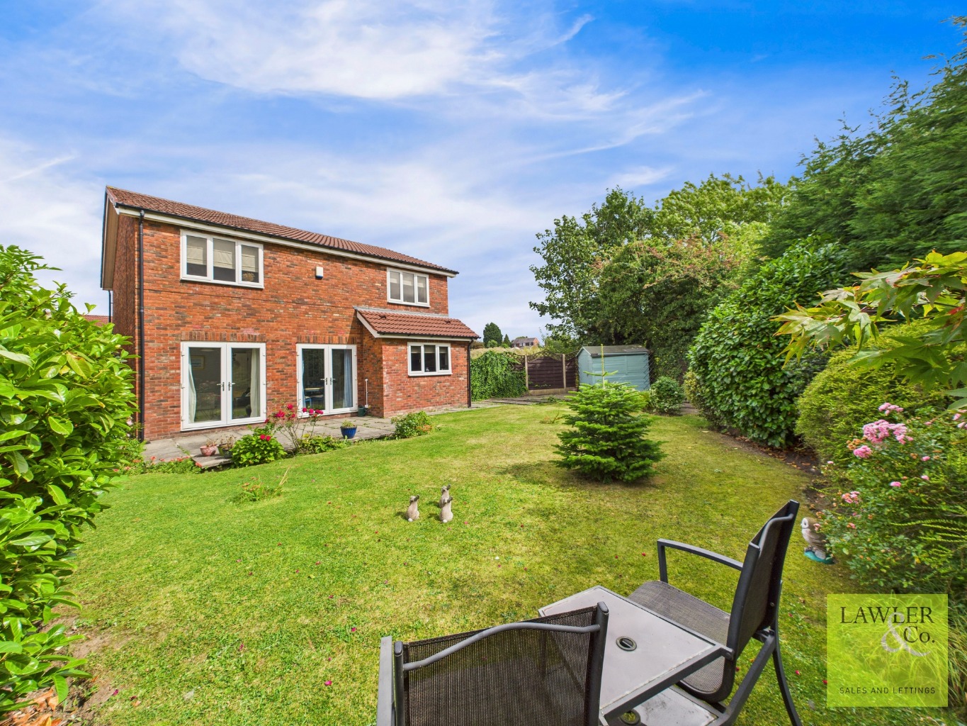 Externally, the property sits on a fantastic plot with a private, lawned rear garden bordered by mature conifers for added privacy, and a paved patio seating area for outdoor dining. Gated side access leads to the front, where there is a low-maintenance garden and a driveway providing ample off-road parking for several vehicles as well as an EV charging point.