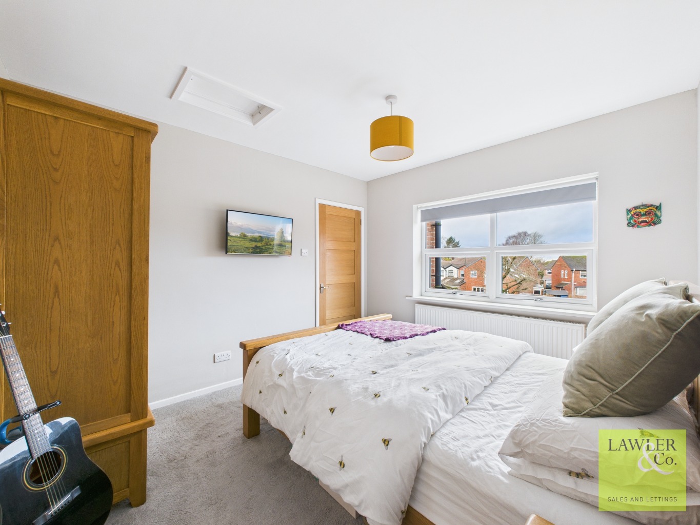 Externally, the property offers a driveway to the front providing ample off-road parking and access to the integral garage. To the rear, the landscaped garden features an L-shaped Indian stone patio ideal for outdoor seating, stepping down to a mainly lawned garden bordered by mature shrubs and bushes.