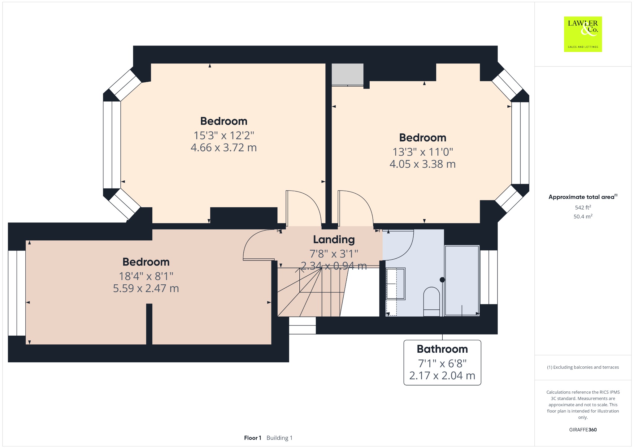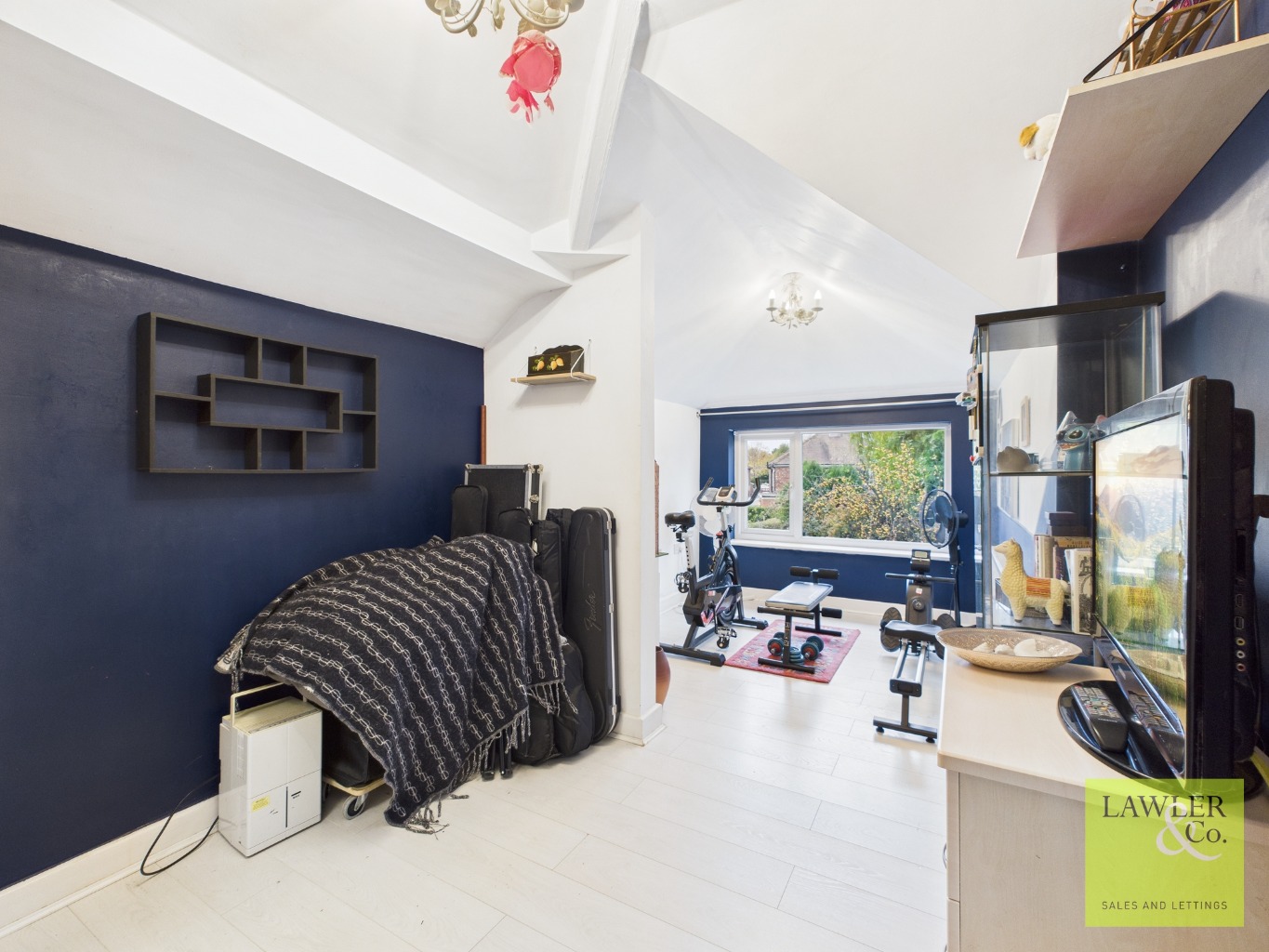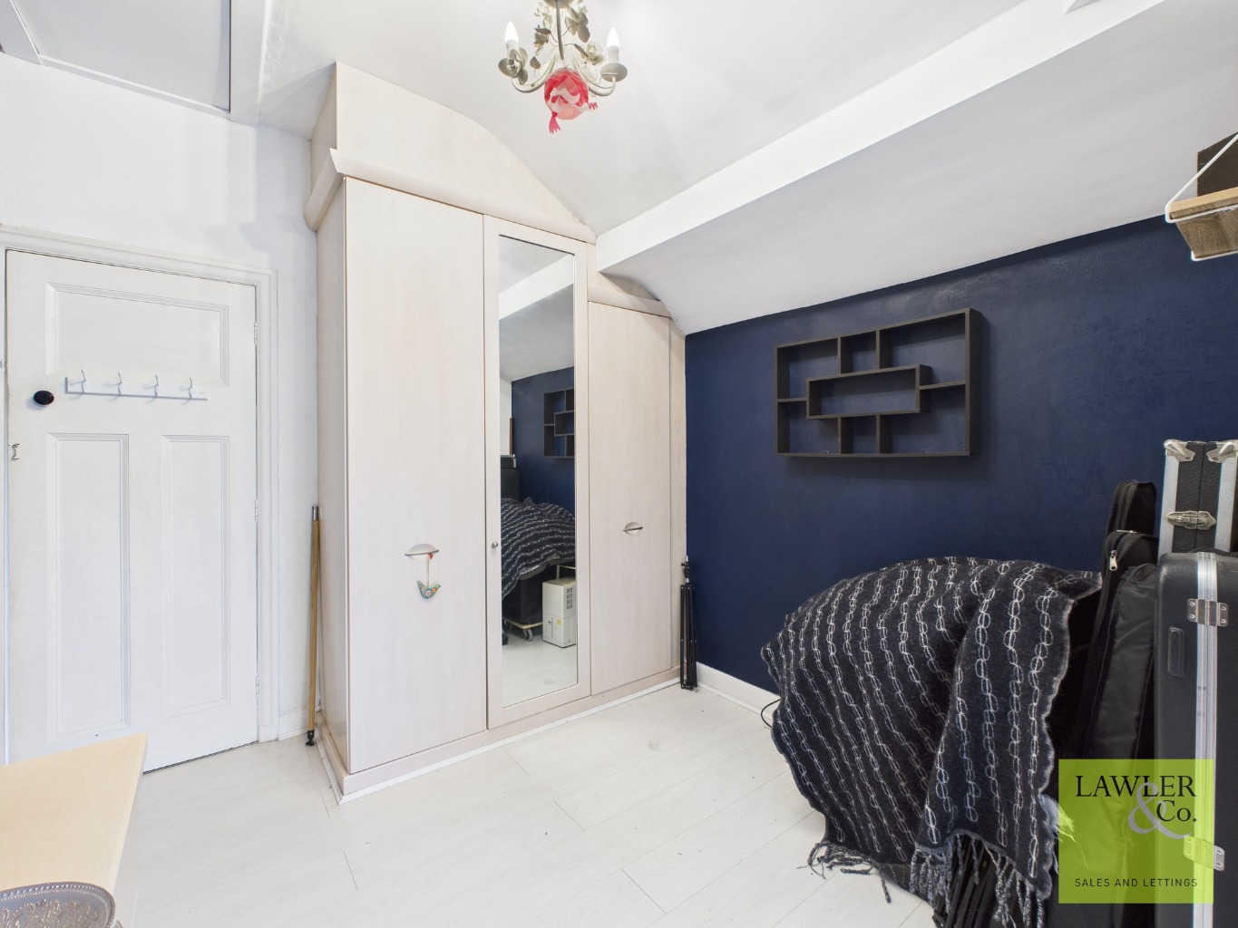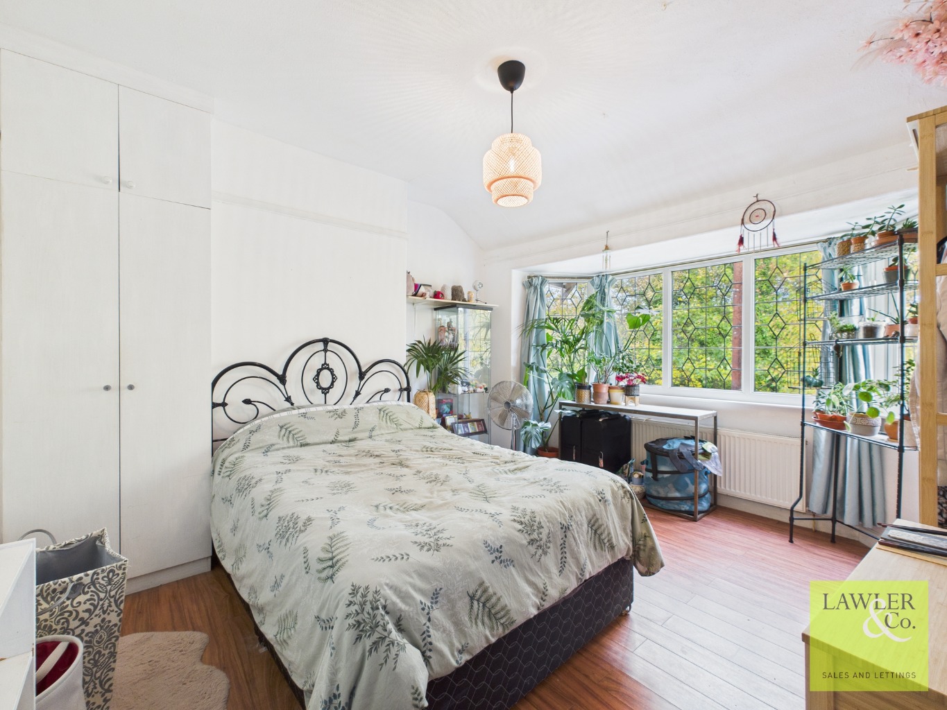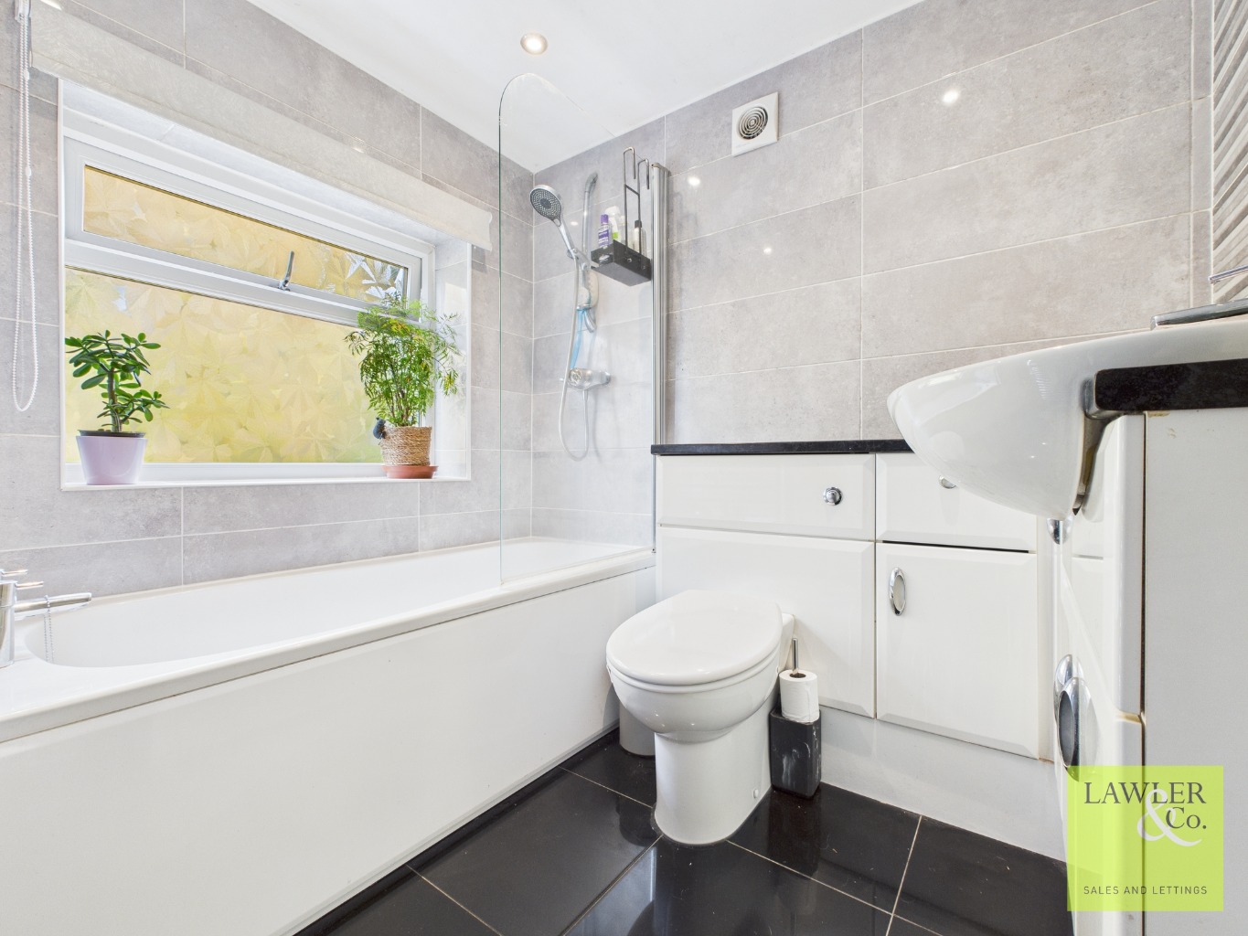 A large landing provides access to three well-proportioned double bedrooms, each with built-in storage and plenty of natural light. Two of the bedrooms feature elegant bay windows, one to the front and one to the rear while the extended third bedroom offers impressive additional space. The family bathroom is tastefully styled, featuring a shower over a panelled bath, WC, and hand wash basin.