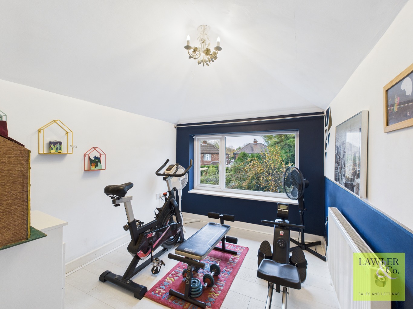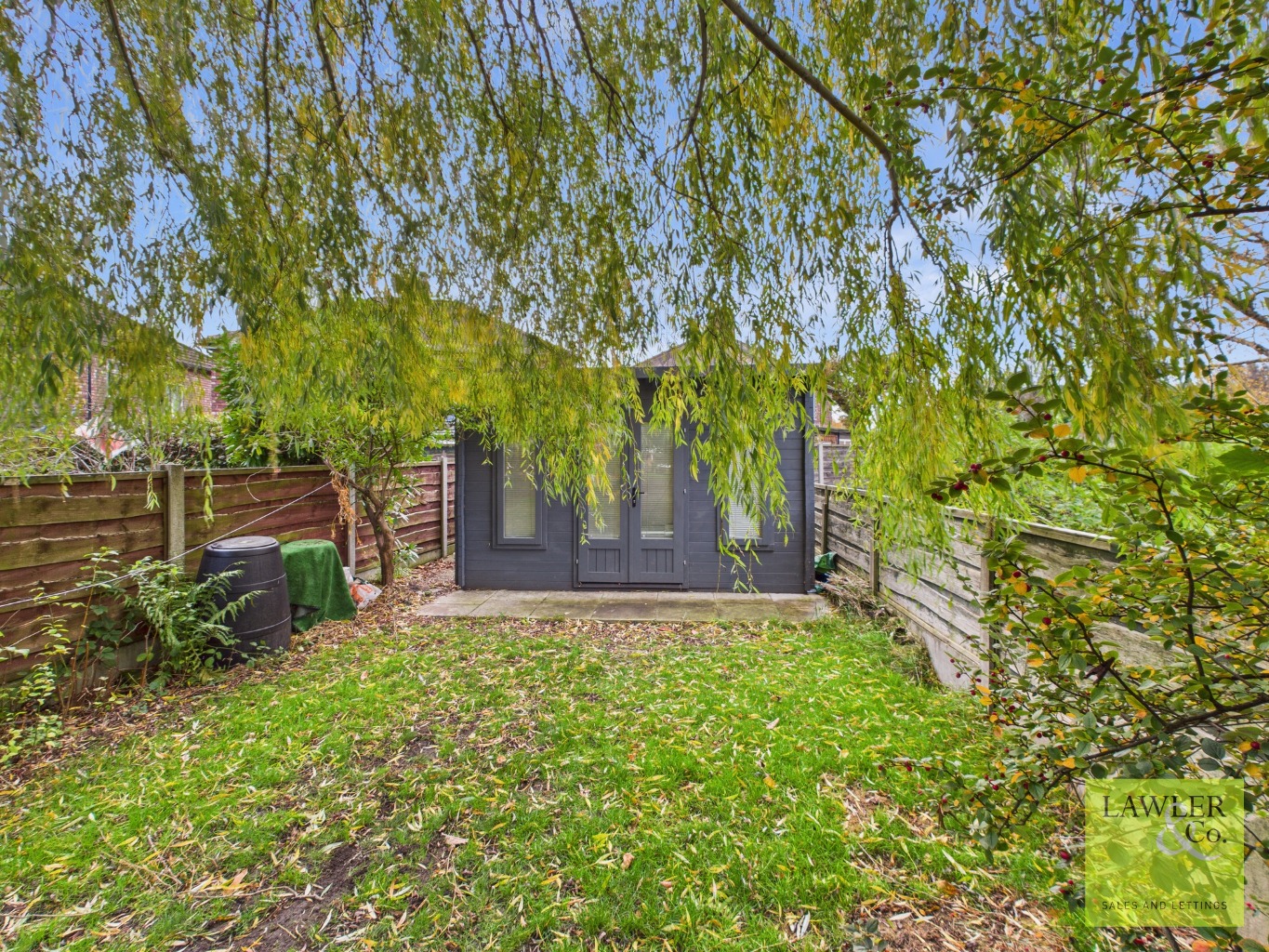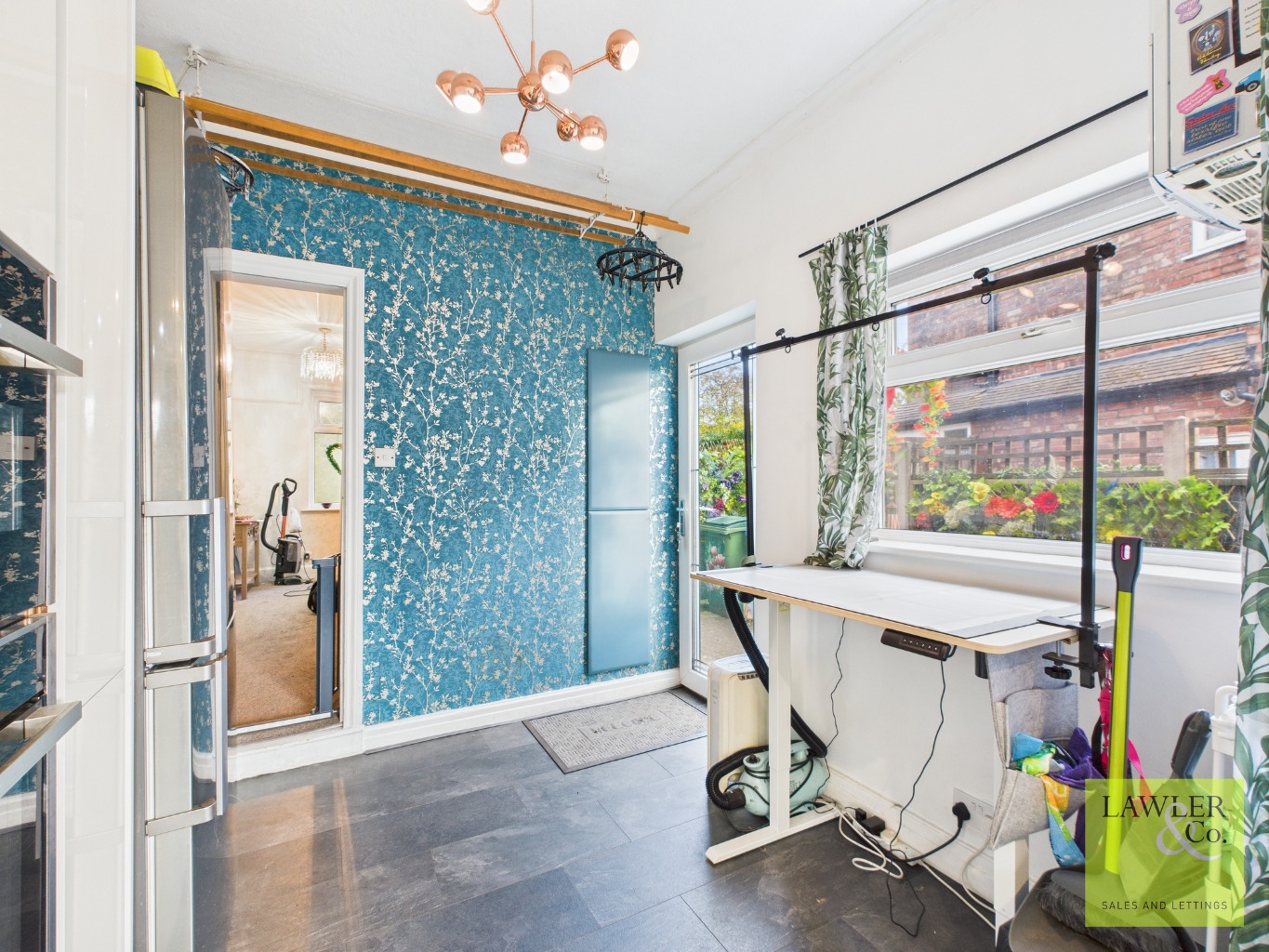 To the rear, a substantially sized garden provides ample outdoor space for family activities, gardening, or entertaining. A flagged pathway leads to a wooden outhouse, perfect for storage or hobby use. To the front, a large driveway offers convenient off-road parking. Perfectly positioned within walking distance of Hazel Grove Station, offering direct routes to Manchester Piccadilly, this property is ideally located for commuters. The area also boasts a range of local shops, cafés, transport links, and highly regarded schools, making it an ideal choice for families seeking both comfort and convenience.