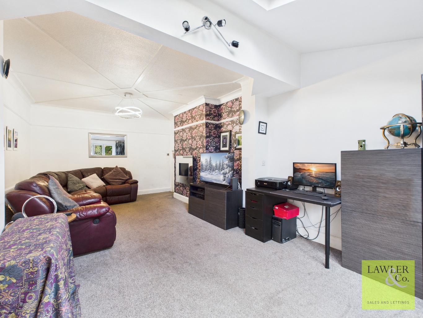 Adjacent lies the extended second reception/dining room, a light-filled and versatile space enhanced by a feature fireplace, Velux window, and bi-folding doors that open onto the rear garden. Whether used as a relaxing family area or a formal dining space, it offers a wonderful setting for everyday living and special gatherings alike.