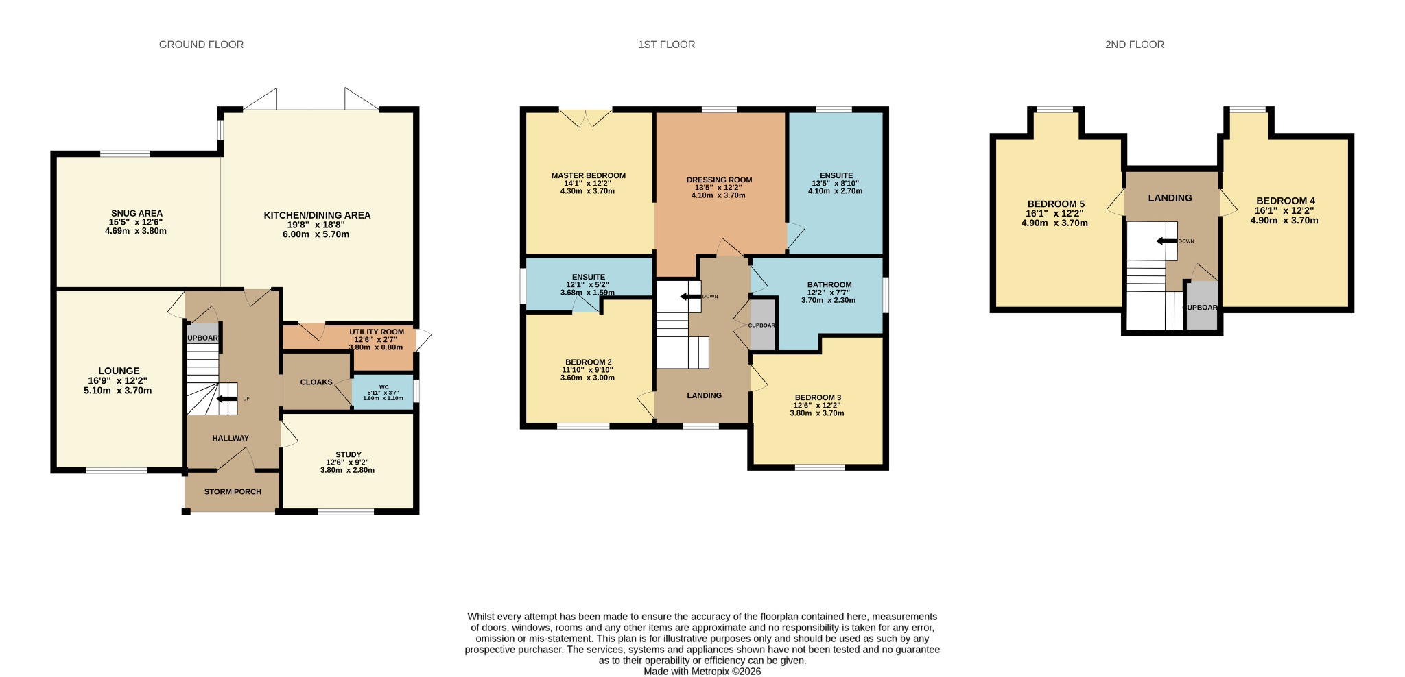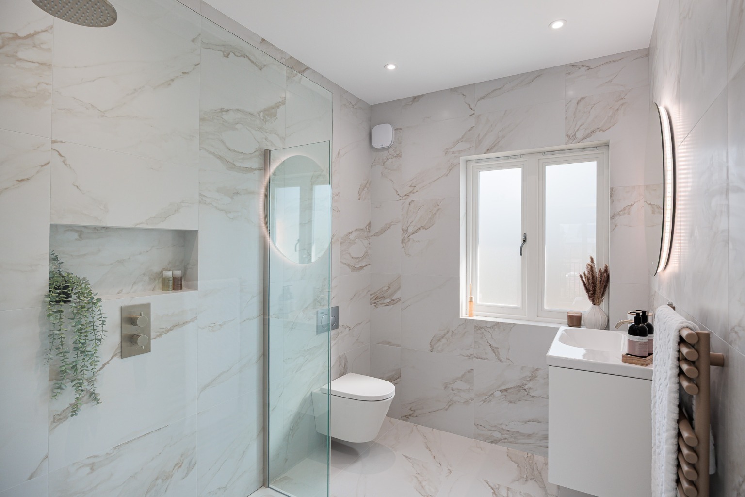 On the first floor, the stunning main bedroom boasts a dressing room and a spacious ensuite. A second double bedroom also benefits from a stylish ensuite, complemented by a contemporary family bathroom and an additional third double bedroom. The second floor provides two further well‑proportioned double bedrooms, ideal for guests, older children, or home‑office use.