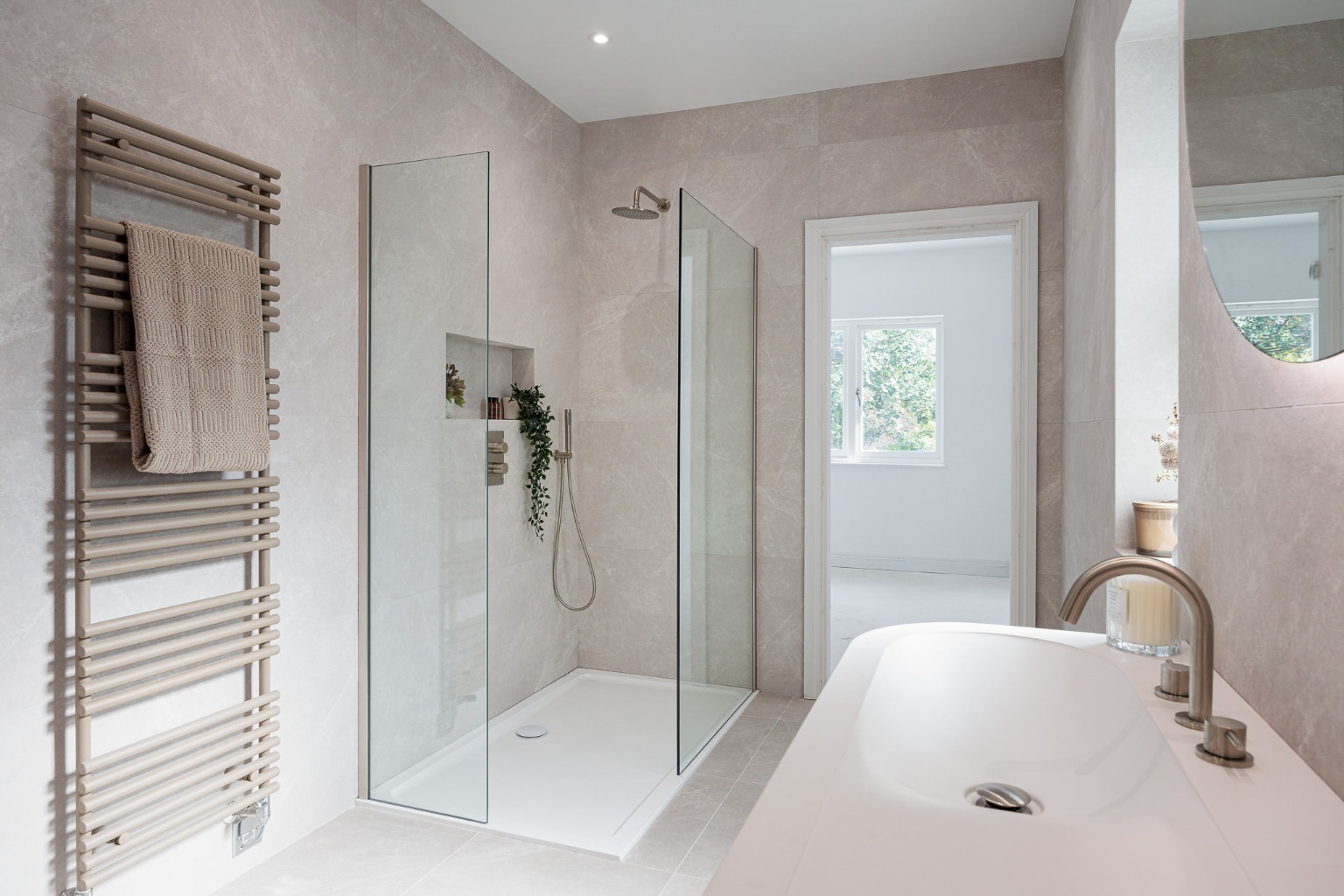 The ground floor features a welcoming entrance hallway, a cloaks area with separate WC, two generous reception rooms, and a substantial open‑plan living, dining, and kitchen space. The bespoke hand‑built shaker‑style kitchen includes hand‑painted cabinetry with oak‑lined cupboards, luxury quartz worktops and upstands, and a full range of NEFF integrated appliances. Bi‑fold doors open onto the private rear garden and patio, creating a seamless indoor–outdoor living experience. A well‑appointed utility room offers excellent storage, laundry facilities, side access. Wet underfloor heating is ran through the ground floor.