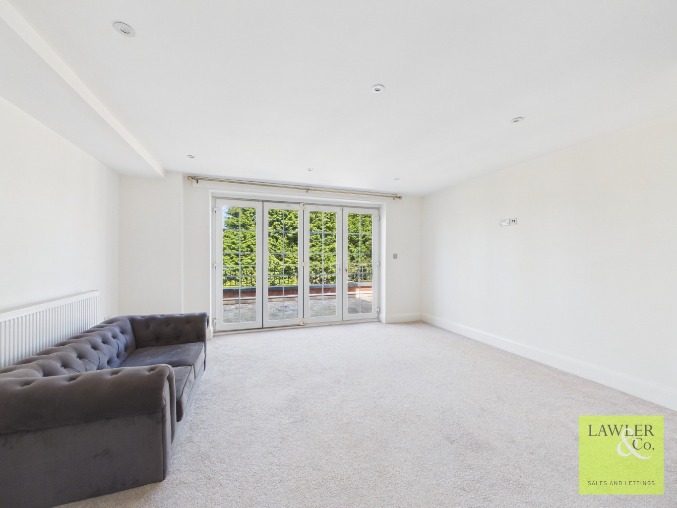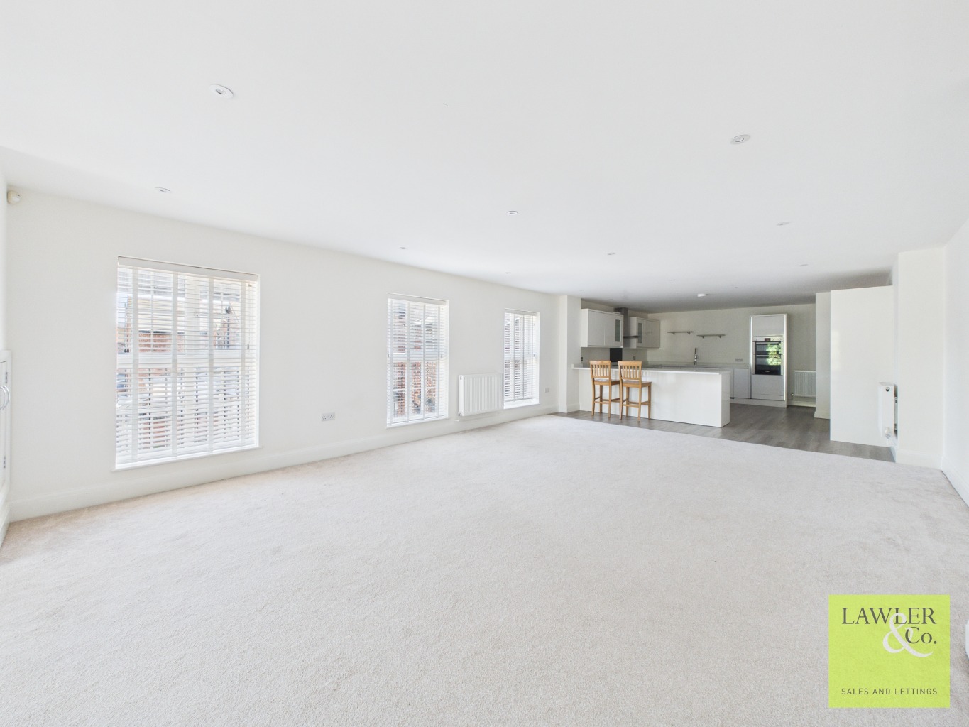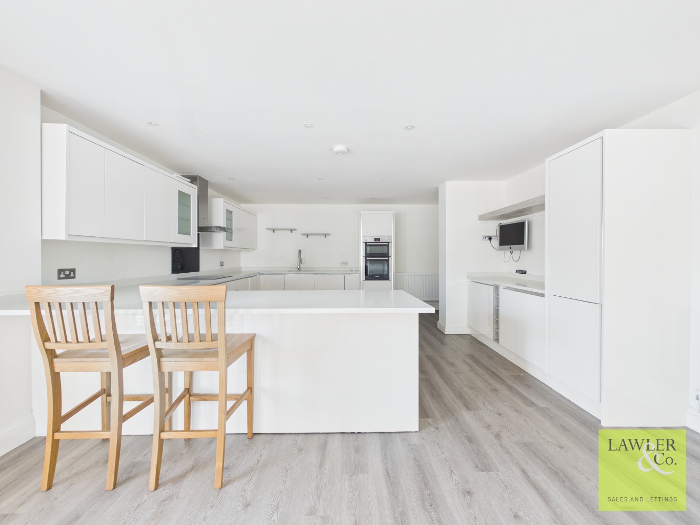 Upon entering the main hallway from the external staircase to the rear of the building, access is provided to each room. Immediately on your right hand side is a utility room with space for washer and dryer, eye and base level units with sink and counter space. To your left is a significantly sized high specification open plan kitchen living and dining space with bifold doors to the rear allowing access to the private terrace. Three windows run across the side of the room to allow for plenty of natural light, making this the perfect area for entertaining. The modern and stylish kitchen with quartz work tops and breakfast bar offers a range of eye and base level units with Bosch induction hob and hood over, dishwasher and double Bosch oven. Integrated fridge freezer.