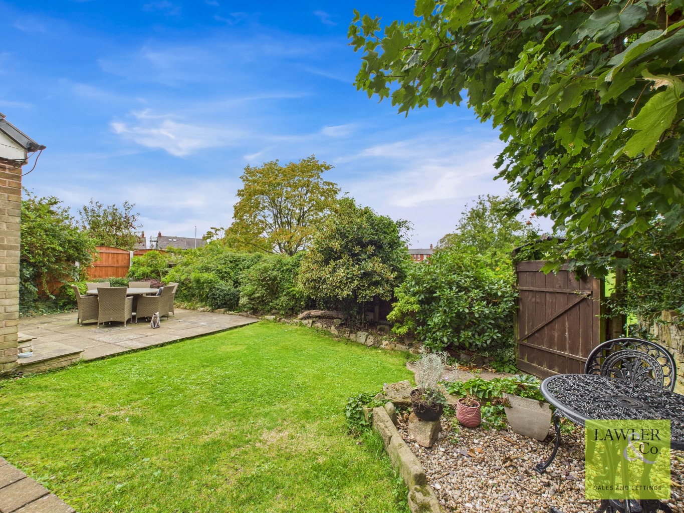There is a neat pleasant garden to the rear with attractive planting, patio area and gate through to the green. There is an extra space to the side which is useful for extra storage. Parking for multiple cars is available to the front and a garage for extra storage.