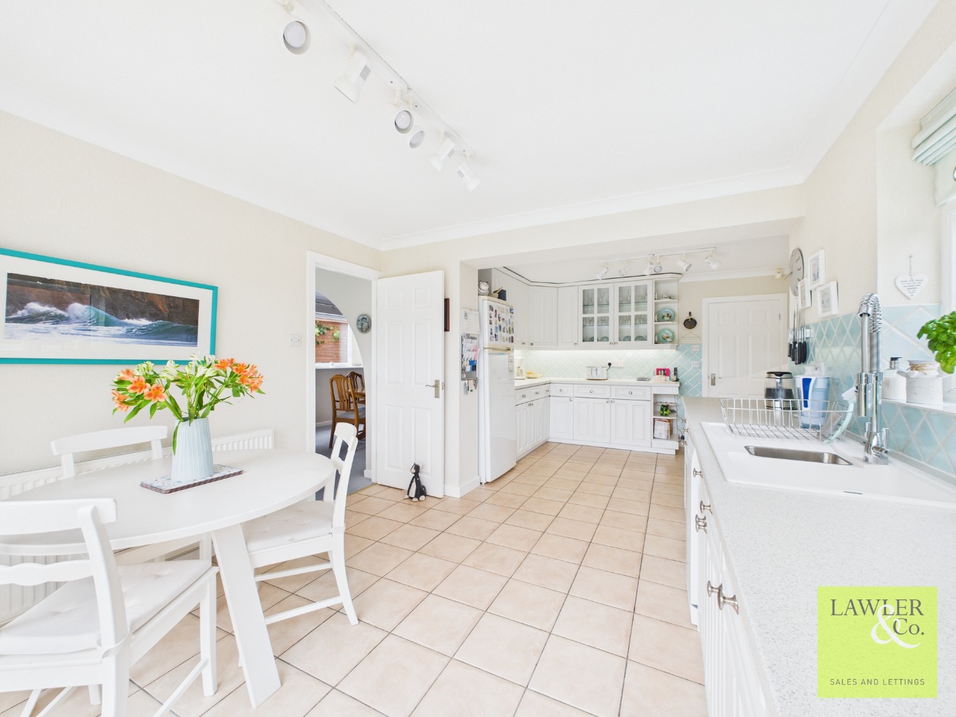 The well-appointed kitchen diner is generous in size and fitted with a range of eye and base level units, providing excellent worktop space and ample room for appliances. A separate utility room and access to the integral garage offer practical storage and everyday convenience.