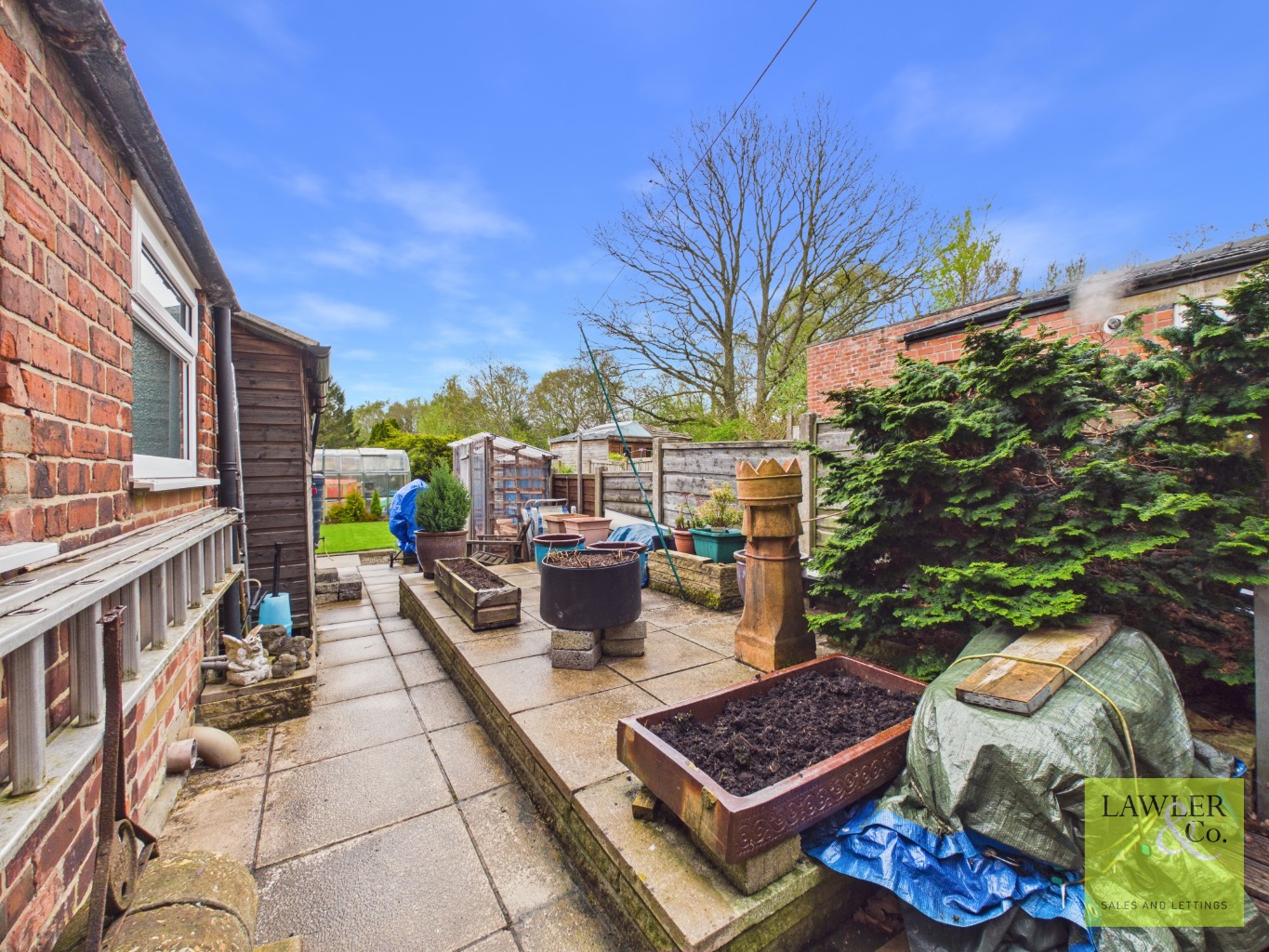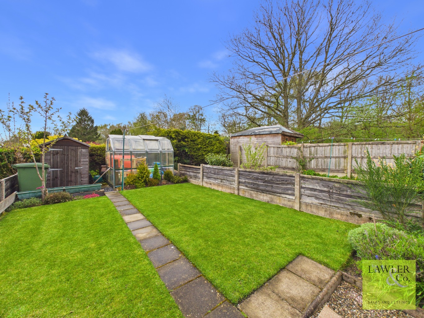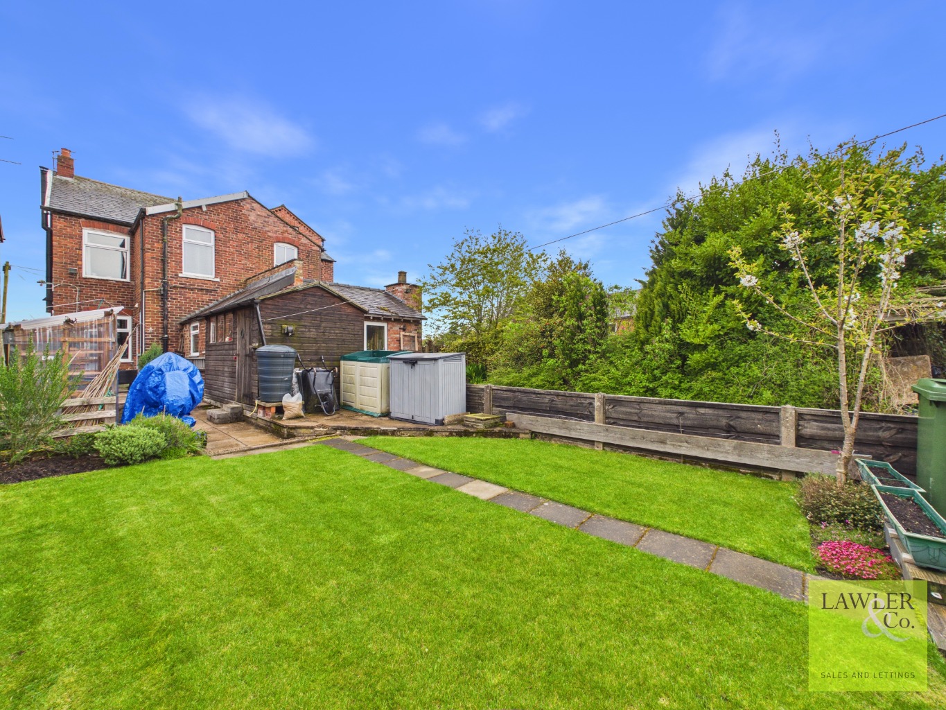 Externally, the property benefits from off-road parking to the front, while a gated side entrance leads to a spacious and enclosed rear garden. A flagged patio provides an ideal seating area, with additional space for a shed. Beyond, a beautifully maintained lawn is bordered by colourful flower beds, with further space optional for greenhouses.