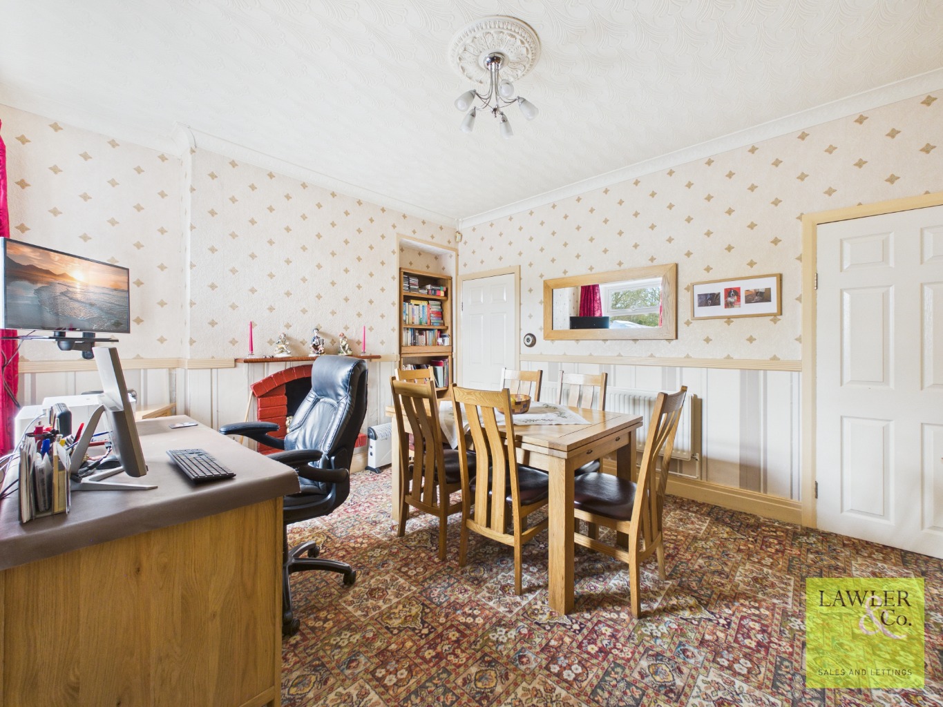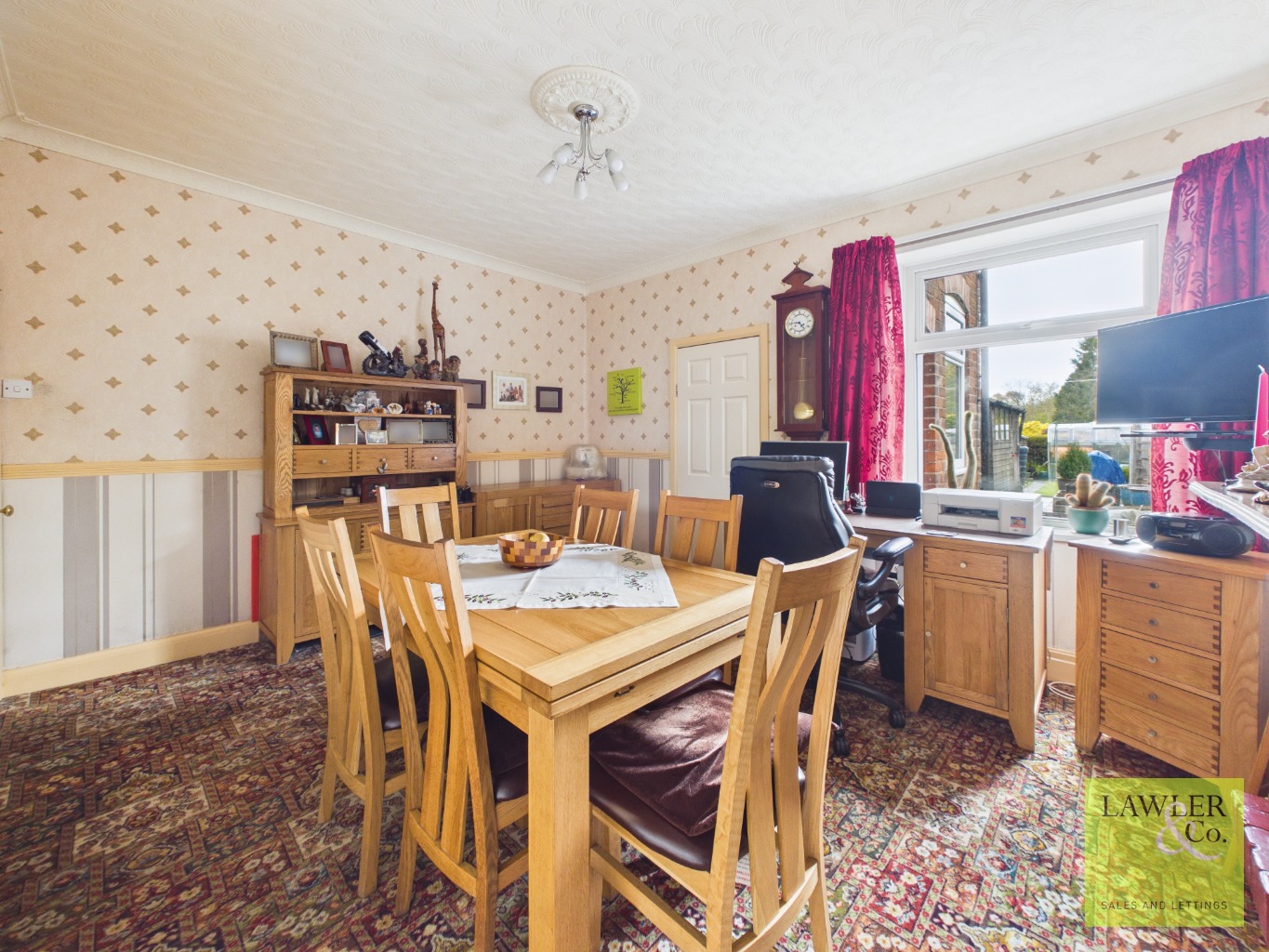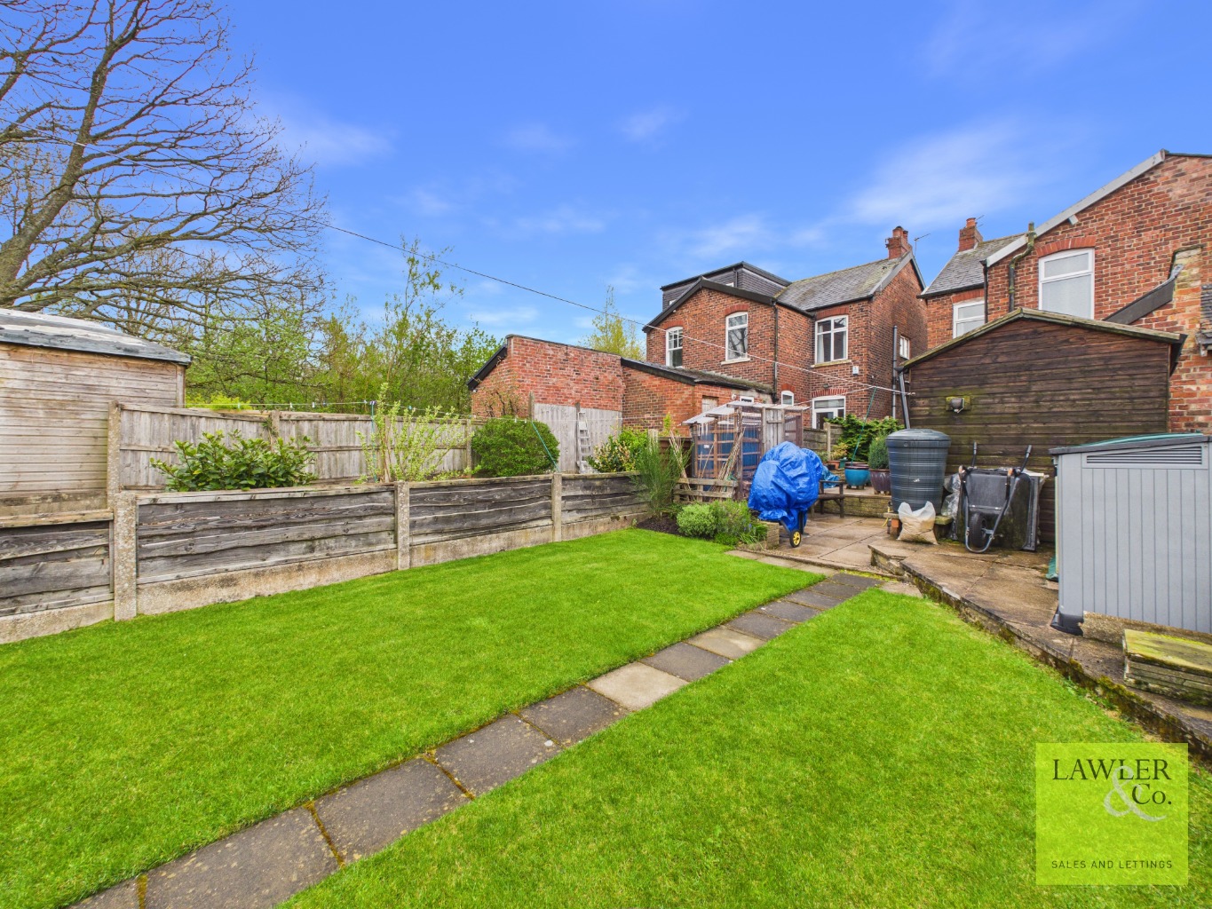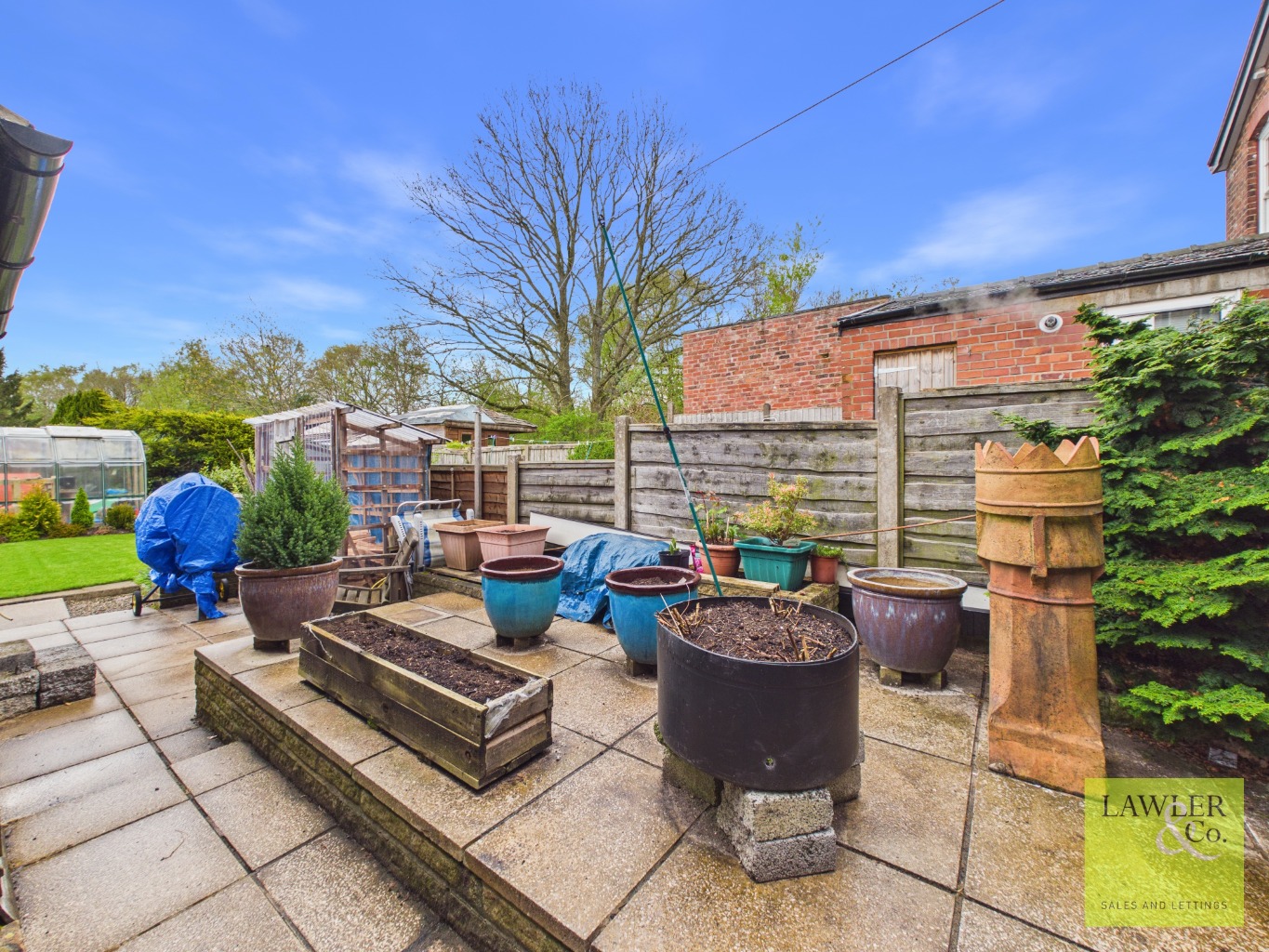 Externally, the property benefits from off-road parking to the front, while a gated side entrance leads to a spacious and enclosed rear garden. A flagged patio provides an ideal seating area, with additional space for a shed. Beyond, a beautifully maintained lawn is bordered by colourful flower beds, with further space optional for greenhouses.