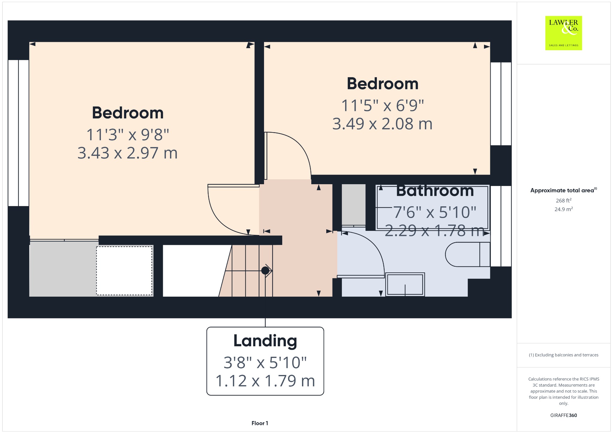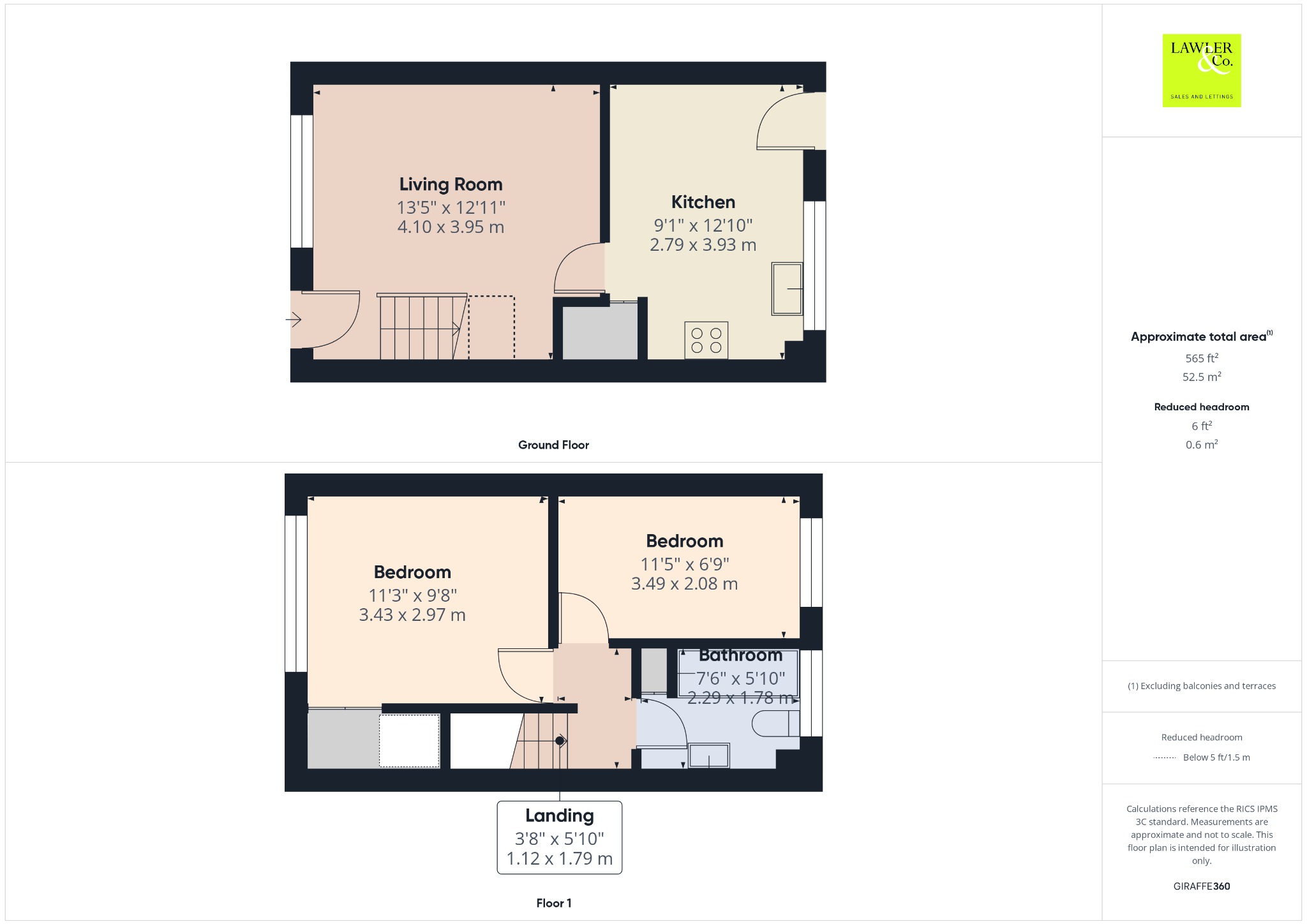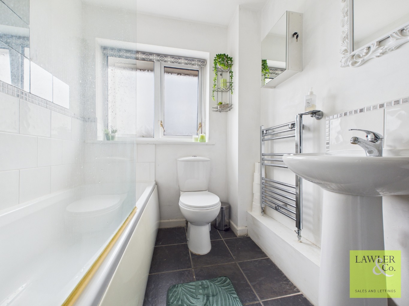 Upstairs, the property offers two generously sized bedrooms. The main bedroom benefits from fitted wardrobes, providing ample storage. Completing the first floor is a contemporary three-piece bathroom suite comprising a bath with shower over, hand wash basin, and low-level WC.