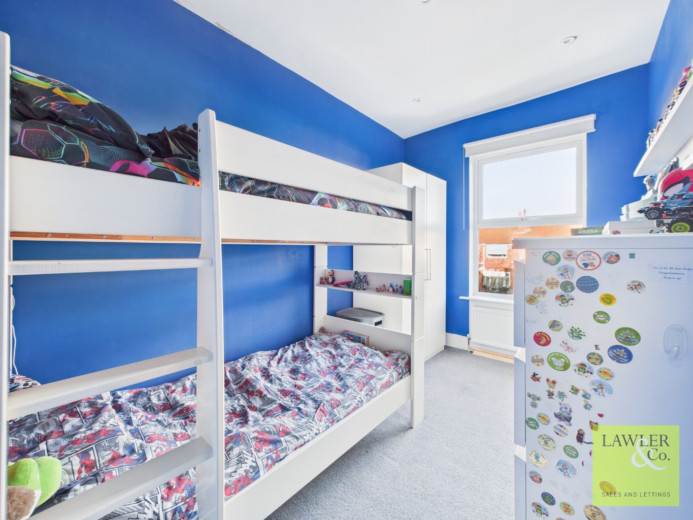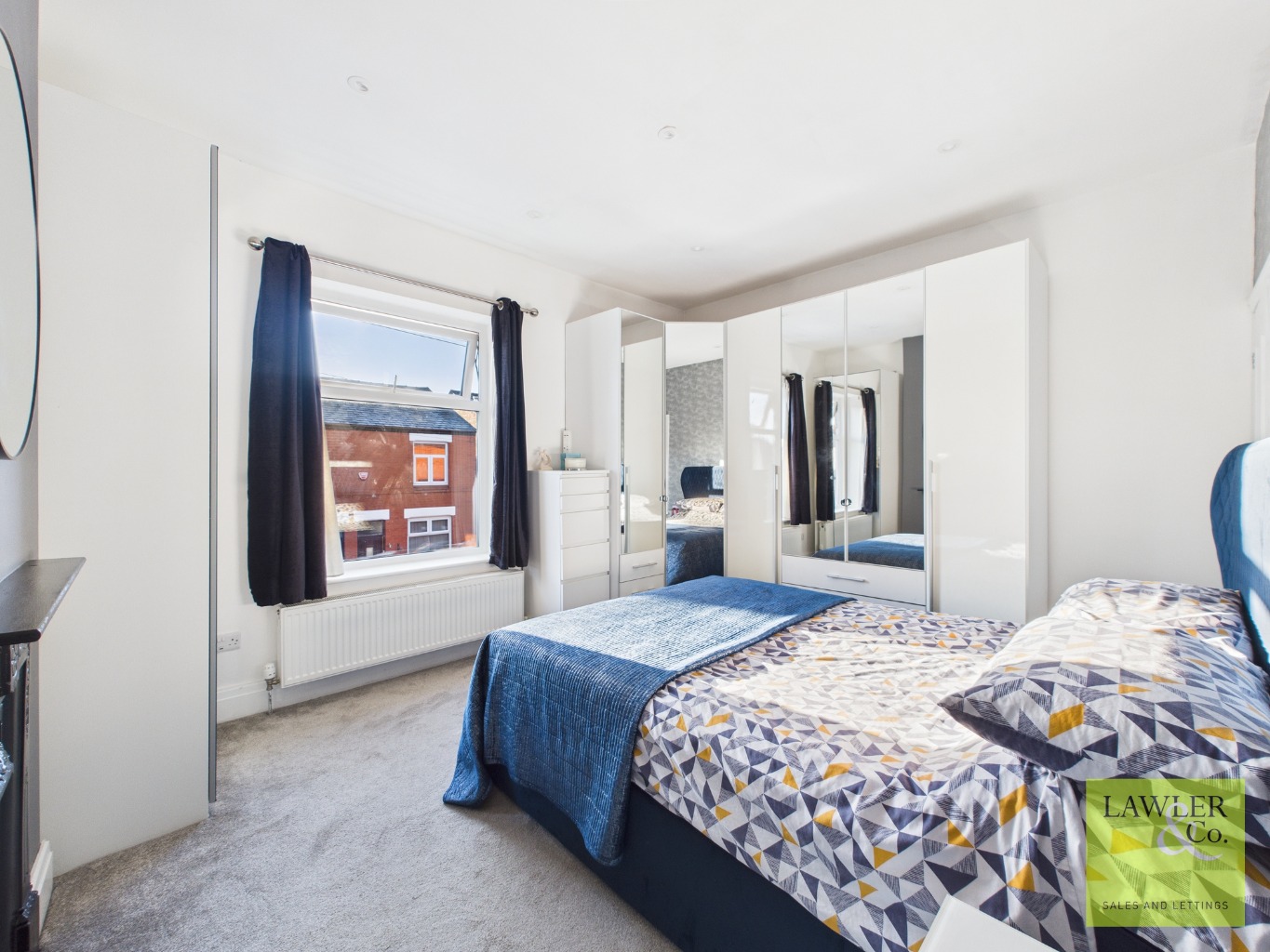 To the first floor, the property continues to impress with two beautifully proportioned bedrooms. The master bedroom benefits from built-in storage and a stunning period fireplace that adds character and charm, while the second bedroom is bright and airy thanks to its large window. Completing the accommodation is a stylish, fully tiled bathroom comprising a bath with shower over, WC and hand wash basin. The cellar offers two versatile chambers with electrical points and plumbing in place, ideal for storage, a utility area or future conversion potential. Externally, the low-maintenance rear garden features astro turf, a flagged patio area and established borders, creating a private and inviting outdoor space. A truly outstanding home offering style, space and location in equal measure.
