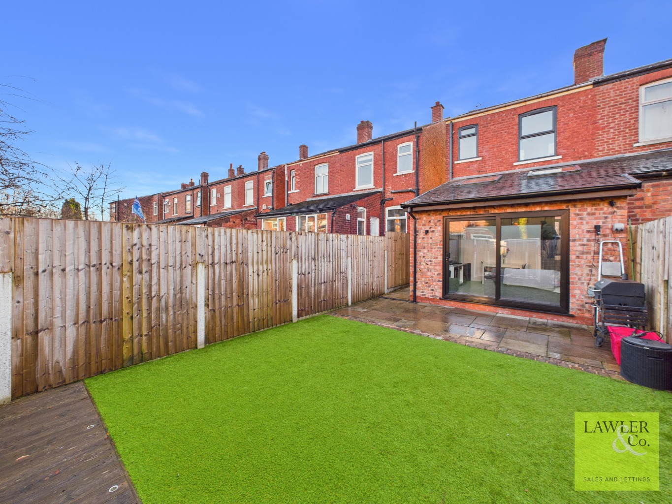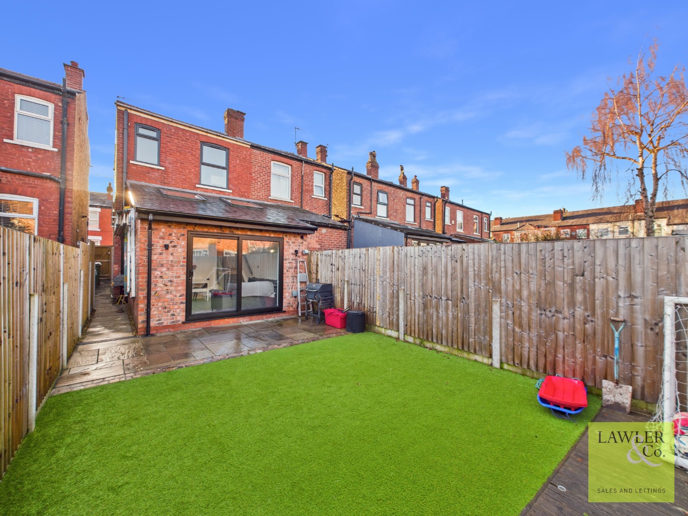 An absolutely breathtaking and incredibly rare opportunity to acquire this exceptional two-bedroom semi-detached home, enviably positioned on the ever-popular St Saviours Road in the heart of Great Moor, Stockport, just a short stroll from local amenities, reputable schools and Woodsmoor Train Station. Finished to an impeccable standard throughout, this truly stunning property effortlessly blends high-end contemporary design with elegant period charm, creating a home that immediately captivates from the moment you step inside.