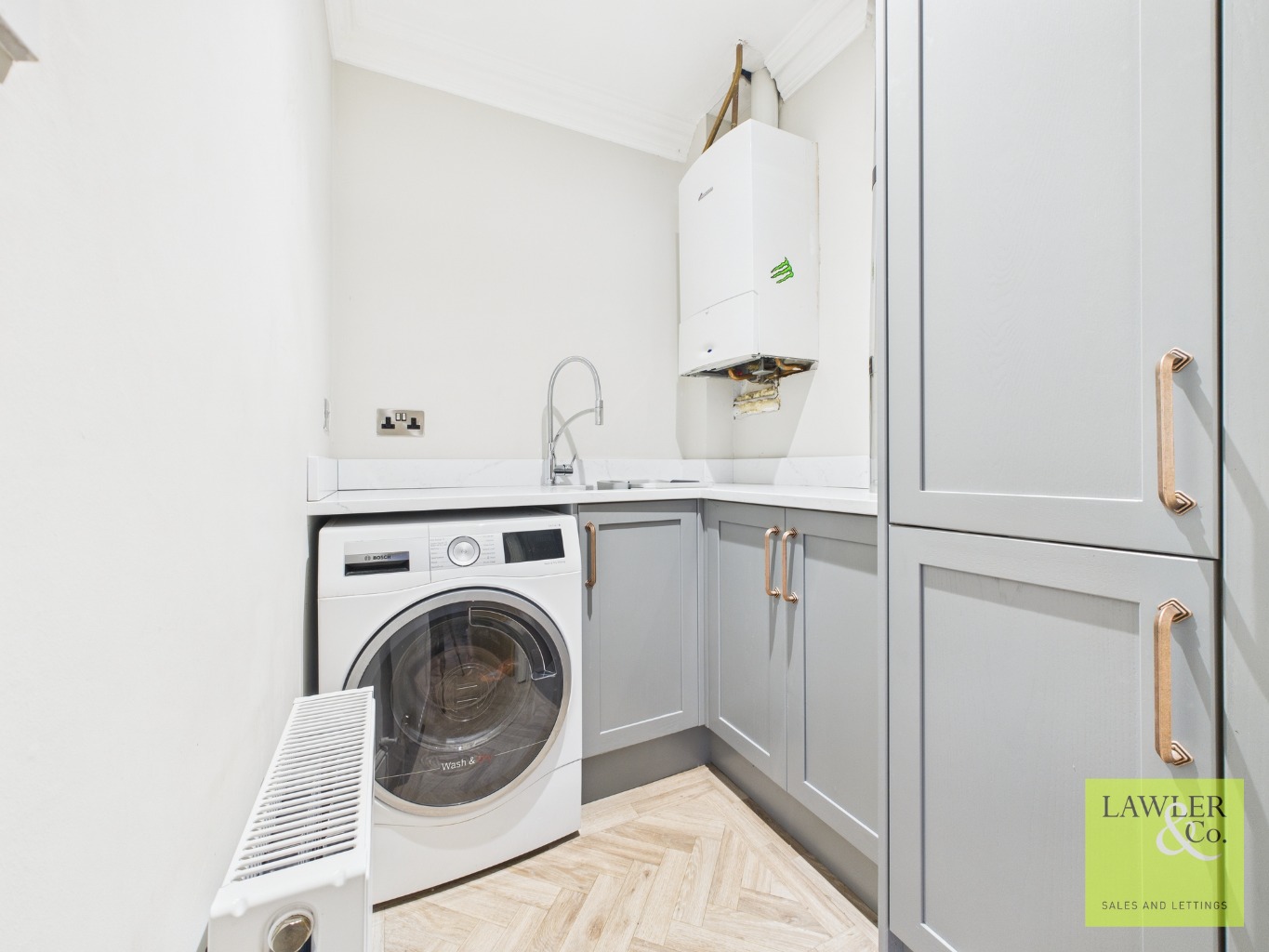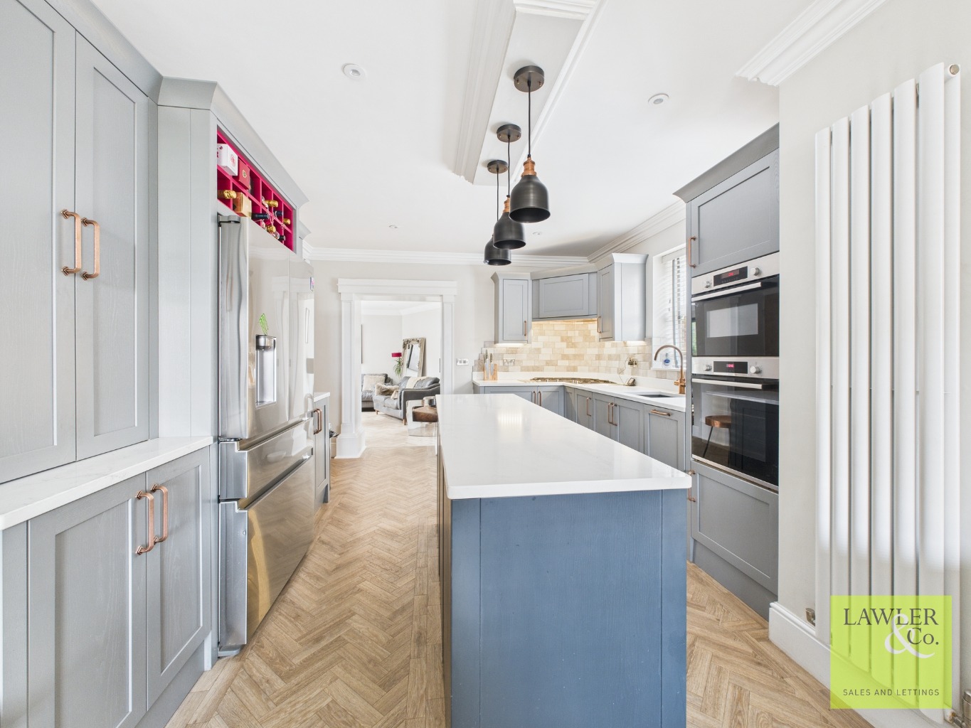 An exceptional opportunity to create your perfect family home. Where contemporary luxury meets timeless elegance. Full of character and charm, it is perfectly positioned on a private road as a secluded gem. Upon entering the entrance hall is a convenient downstairs WC. From here, the welcoming internal hallway flows effortlessly to all four reception rooms offering versatile living . The stunning open plan kitchen diner is truly the heart of the home combining style with functionality. Thoughtfully designed with luxurious marble worktops and plenty of eye and base level units and breakfast bar. Featuring high-spec BOSCH double oven and dishwasher with space for an American style fridge freezer and a corner gas hob with extractor. Perfect for all your culinary needs, complimented by an additional utility room- complete with sink and eye and base level units with ample space for white goods. Following through into the bright and airy lounge, skylights flood the room with natural light aswell as full length Bi-fold doors to the garden offering picturesque views whilst you get comfy by the log burner. Designed with built in storage and a side entrance leading to the front gate.