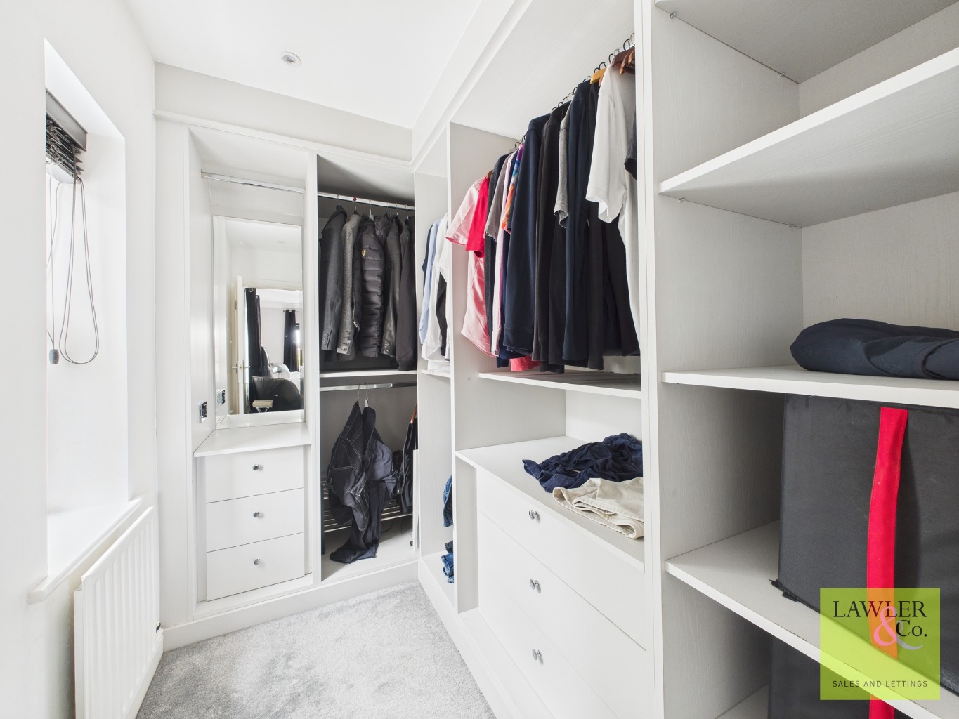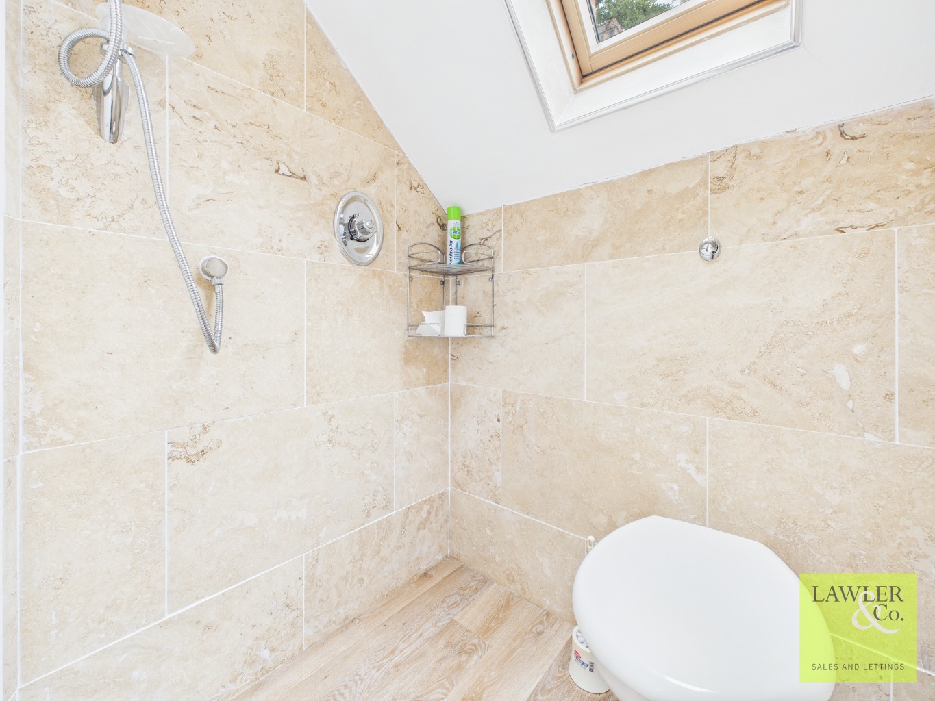 To the second floor, the staircase is bathed in natural sunlight through the four feature skylights. From the landing you’ll find two further double bedrooms each offering eaves storage. One currently used as a home gym showcases the flexibility of the space. The other main bedroom is complete with an en-suite, featuring a WC, sink and option to add in a shower.
