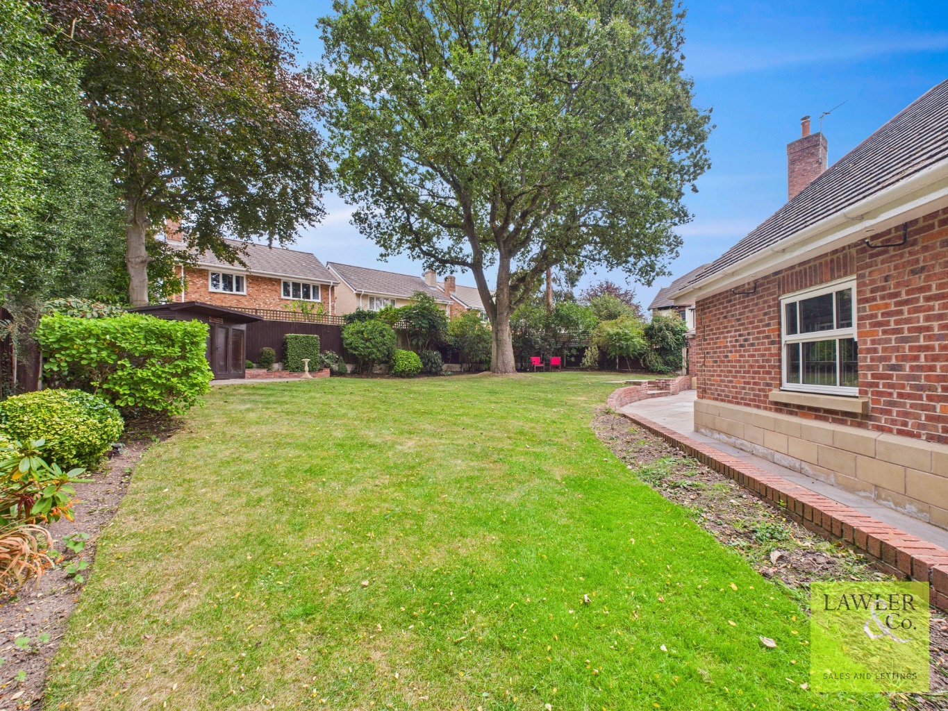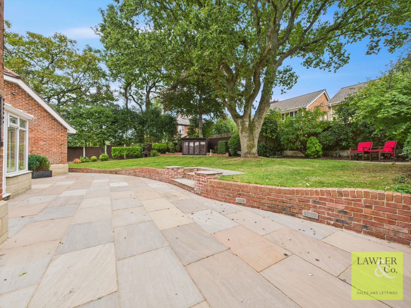 Externally the home continues to impress. To the front, a spacious driveway provides ample parking for multiple vehicles with the added benefit of a secure double garage. Leading down the side of the property to the beautifully maintained rear garden- a generously sized outdoor sanctuary. With a stylish Indian stone patio for seating- perfect for summer gatherings and entertaining guests with surrounding herbaceous borders and mature trees that offers privacy. Mainly laid to lawn with a further seating area to the rear, there is also space for a shed, ideal for all your outdoor essentials. Viewings are strongly advised to avoid missing out on this outstanding forever home.