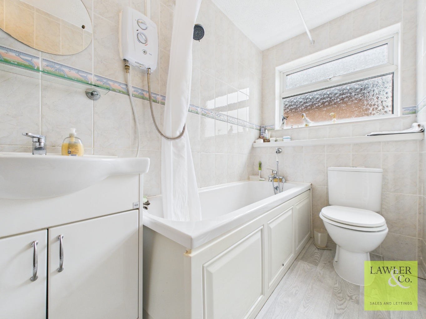 To the first floor the property further boasts two well-proportioned double bedrooms, each offering comfortable living space. The three piece family bathroom comprises a bath with overhead shower, WC and a handwash basin. Additionally, an electrical ladder allows easy access to the loft space; ideal for storage.
