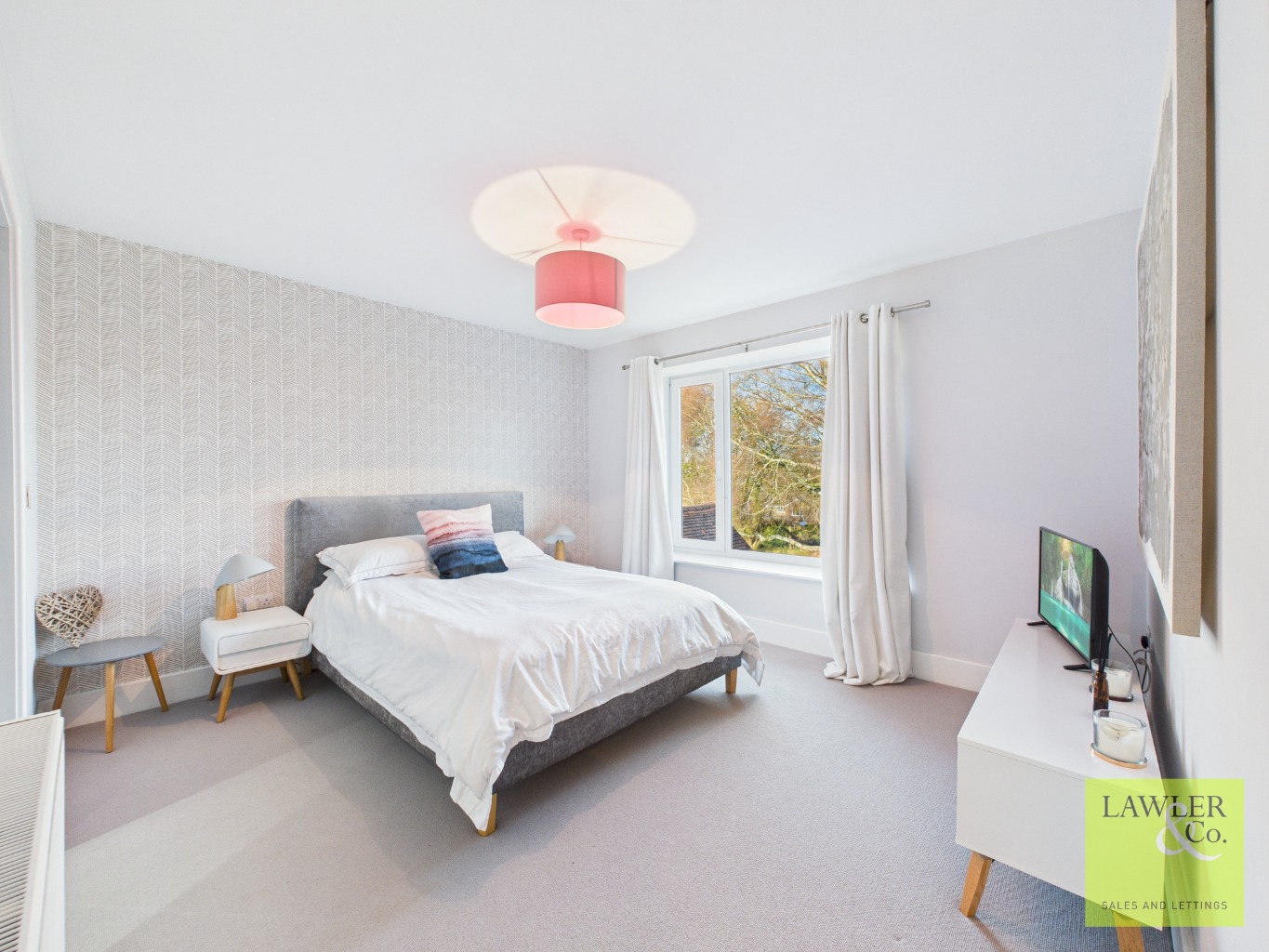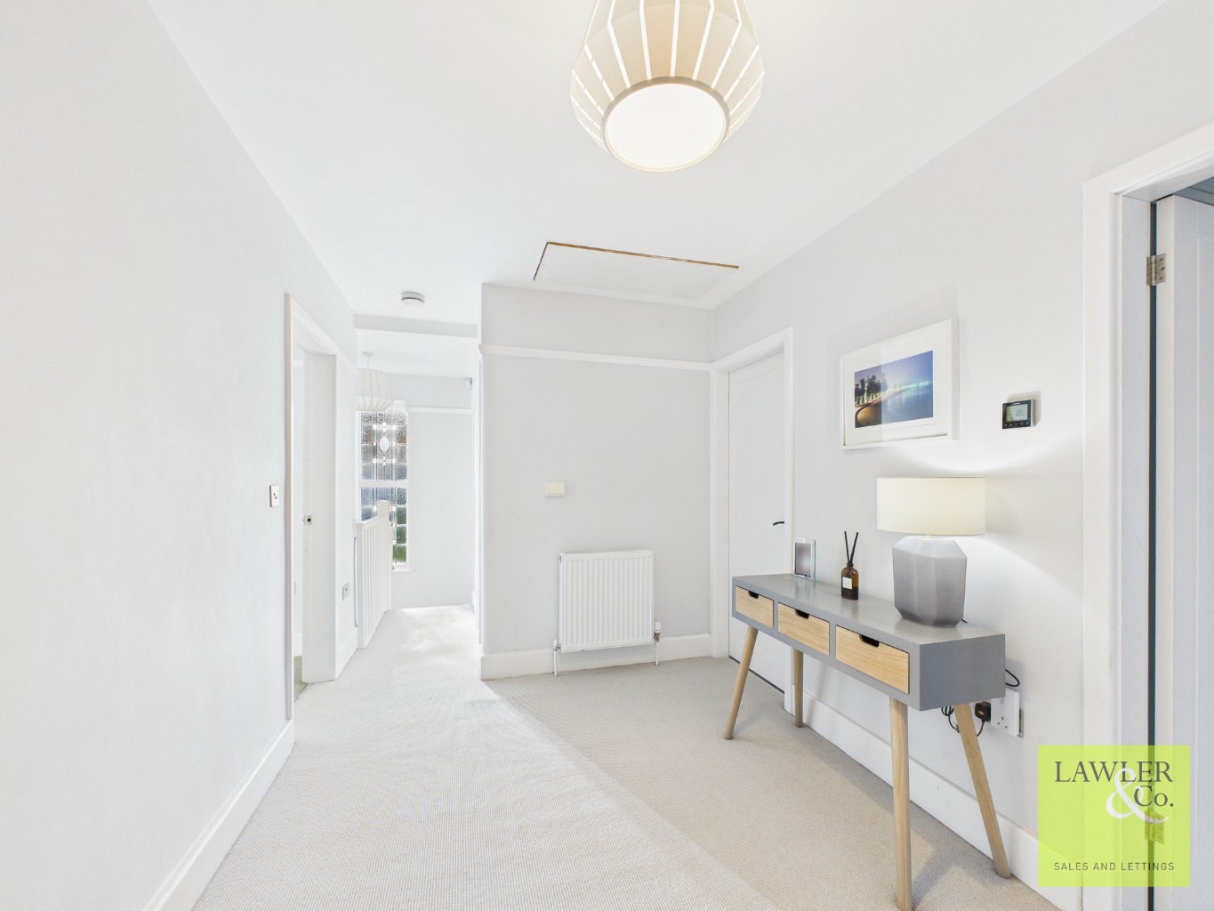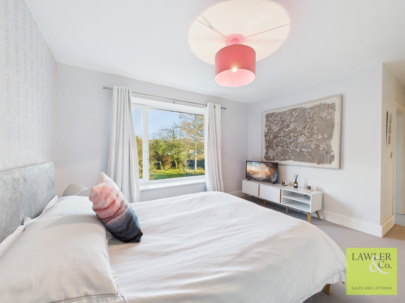 Heading upstairs, you will notice original windows and are welcomed onto a generous landing that also provides access to the loft. The master double bedroom enjoys views over the rear garden and features fitted wardrobes along with a handy walk-in wardrobe which offers valuable additional and convenient storage. Its partially tiled ensuite is well-appointed with underfloor heating, a vanity wash basin, heated towel rail, walk-through shower and WC. The second double bedroom also benefits from attractive rear-facing views and includes its own ensuite, fitted with a vanity wash basin, heated towel rail, walk-in shower and WC. The third double bedroom features picture rails, adding a touch of character, while the fourth and fifth double bedrooms provide bright, airy spaces ideal for family, guests or a home office. The partially tiled four piece family bathroom includes underfloor heating, a bathtub, walk-in shower, heated towel rail, wash basin and WC—creating a comfortable and relaxing space for everyday use.