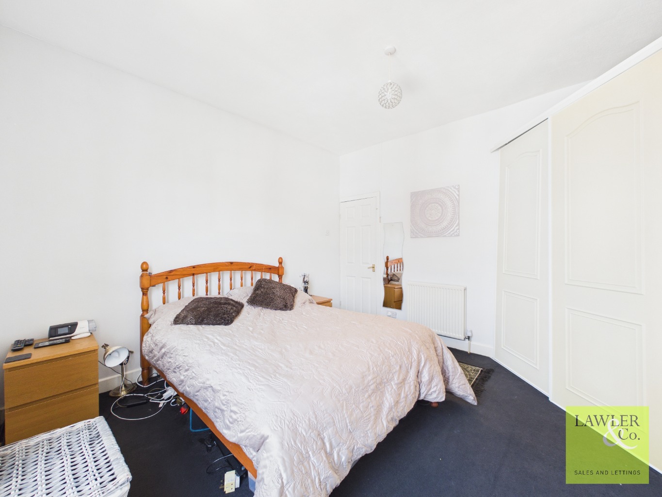Upstairs, the property boasts a spacious double principal bedroom, alongside a second well-proportioned bedroom, both offering ample room for furnishings and storage. The accommodation is completed by a modern three-piece family bathroom, comprising; bath with overhead shower, handwash basin and WC.