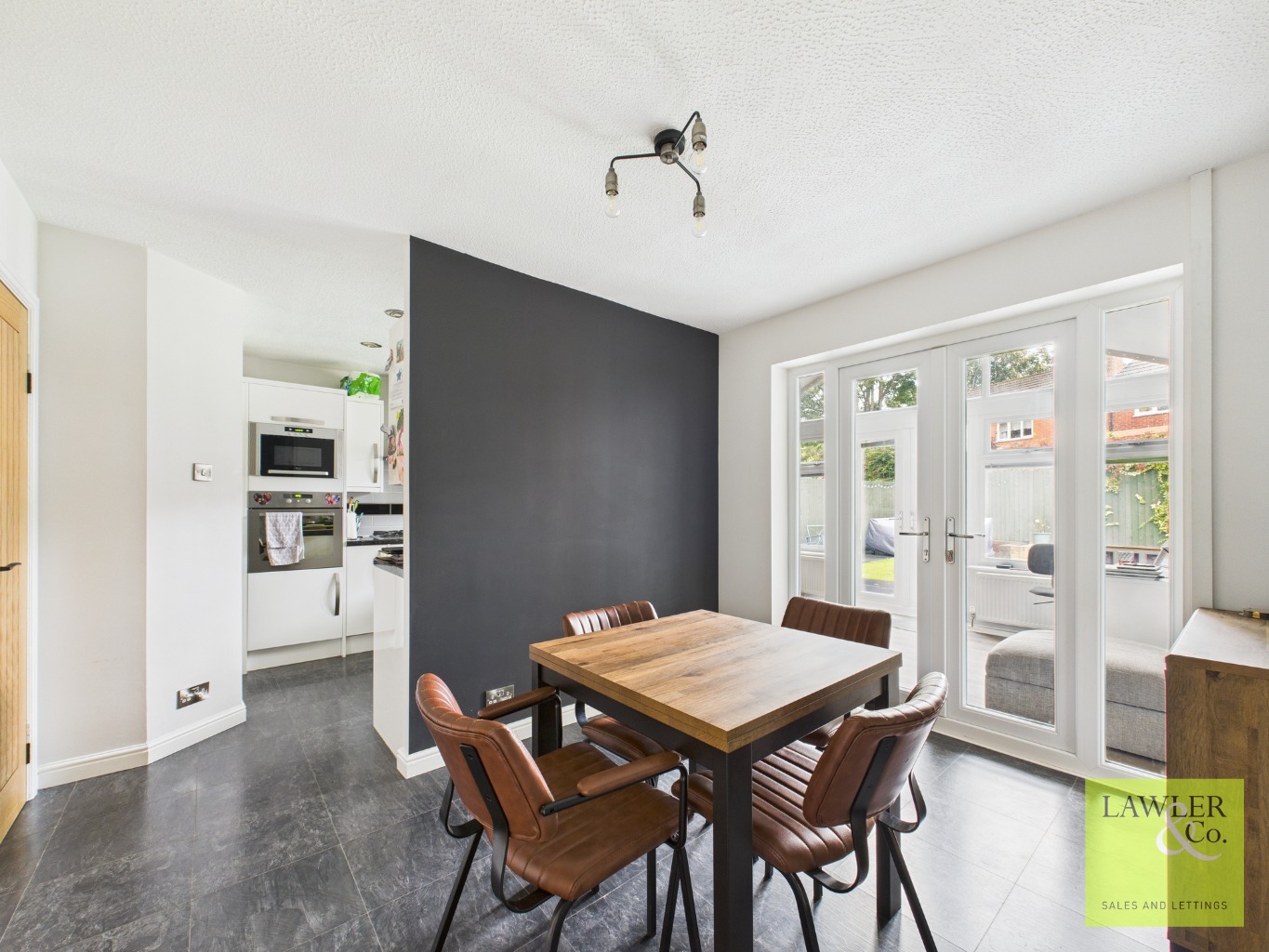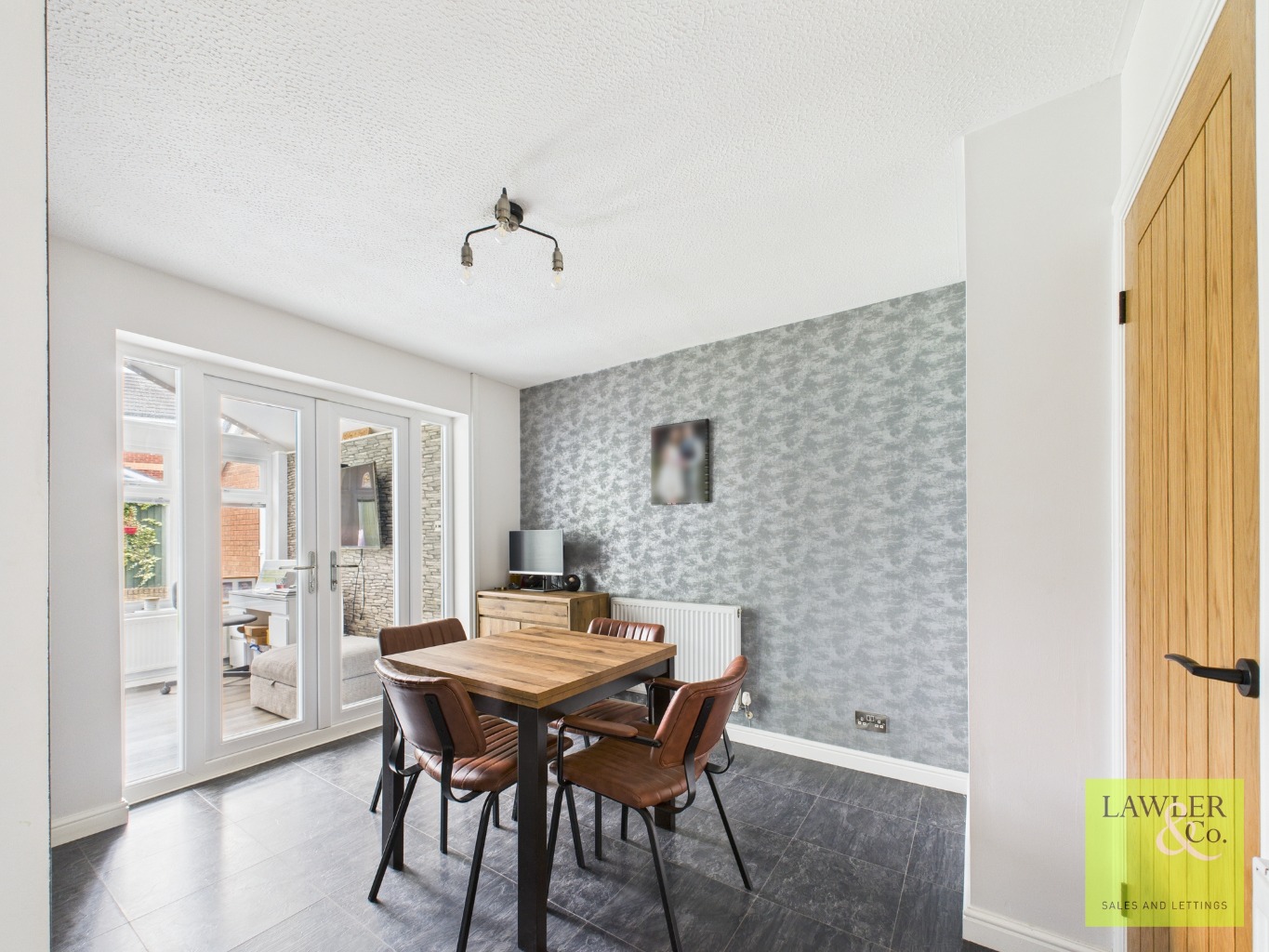 The heart of the home is the dining room and kitchen, offering space for a full family table on one side and a well-equipped kitchen with integrated appliances on the other. There’s also a utility room, keeping your washer and dryer tucked away, with extra cupboard space—ideal for pet food, cleaning supplies, or those extra kitchen gadgets (yes, even the Ninja!). A handy side door gives you easy access to the garden from here too.