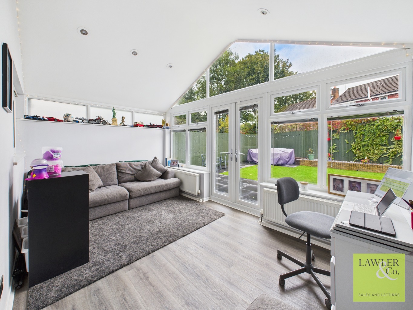 From the dining room, you step into a cosy conservatory with a proper roof, making it a warm and inviting space all year round. Imagine twinkling fairy lights, a Christmas tree in the corner, and the scent of mulled wine in the air, it’s the kind of room that makes winter feel magical.