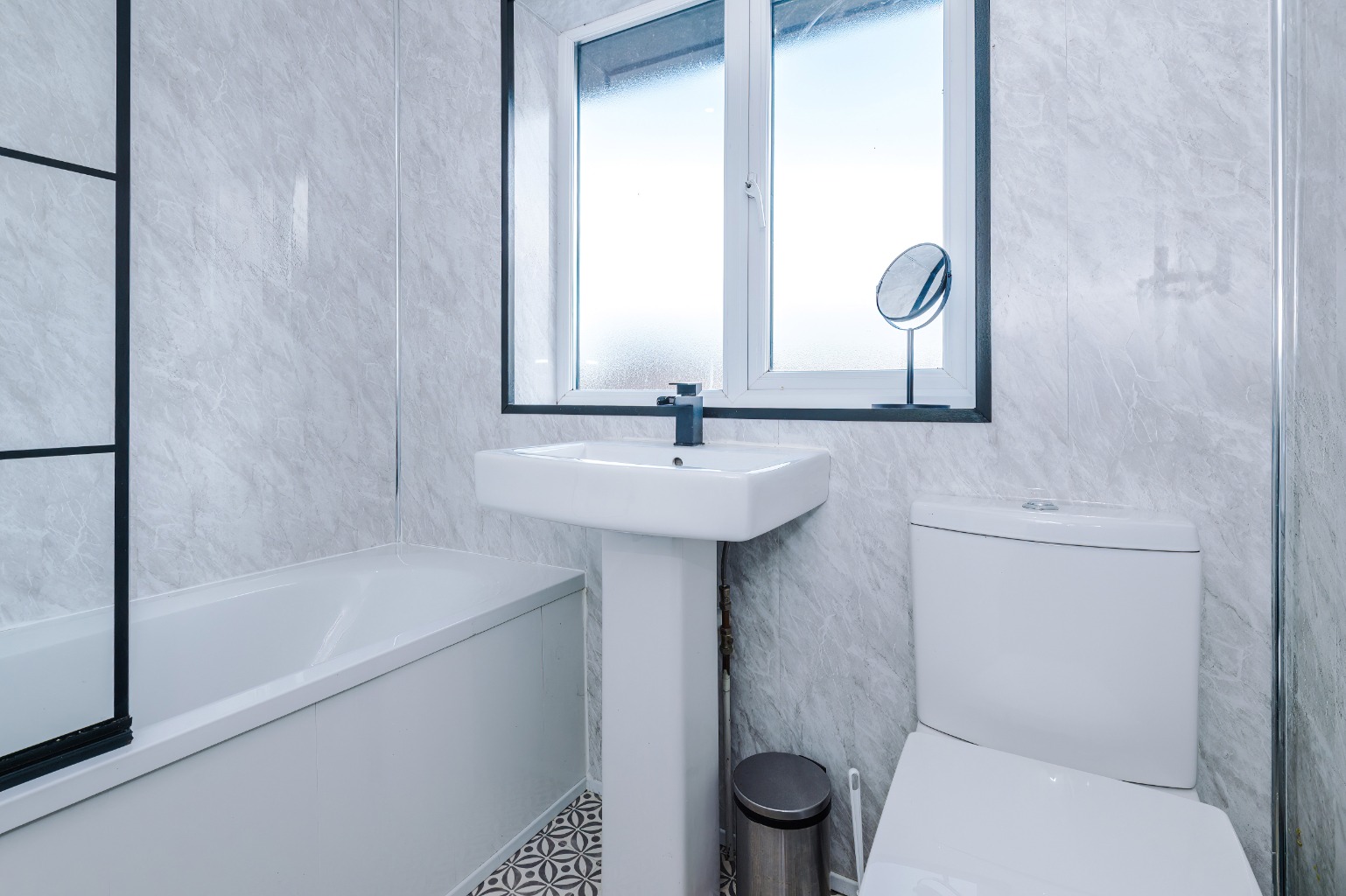 Upstairs comprises of two well-proportioned double bedrooms, one featuring fitted wardrobes and a separate single bedroom. The accommodation is completed by a newly installed, modern bathroom suite with a bath and shower.