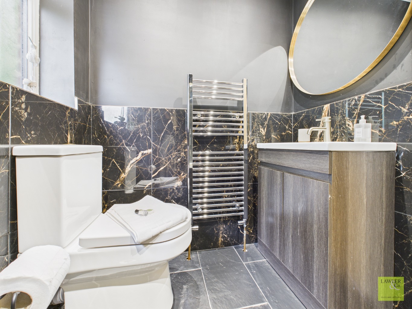 To the first floor, the landing gives access to three well-proportioned Bedrooms, including two generous doubles and a versatile third bedroom that would also make an excellent home office or nursery. The Family Bathroom is modern and finished to a high standard, featuring a white suite with shower over bath, attractive wall tiling, and chrome fittings.