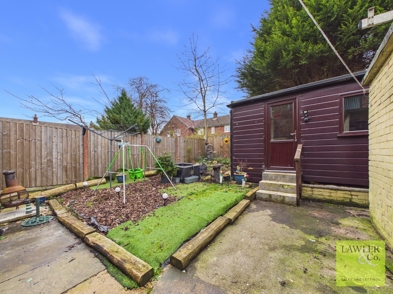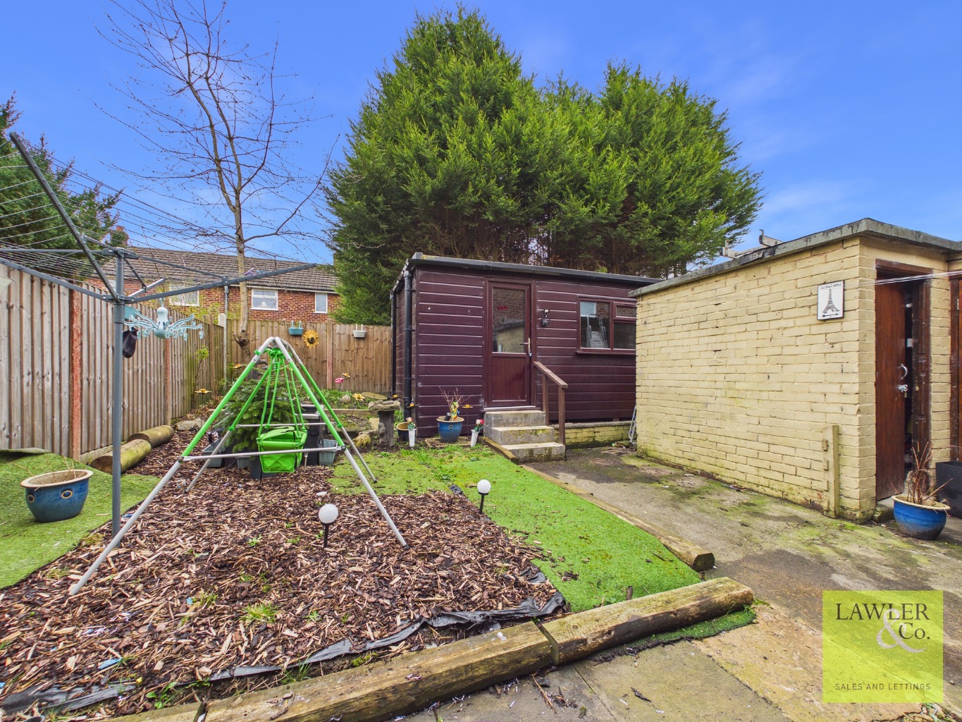 Outside the rear garden has an self contained annexe with bedroom/lounge space, kitchenette to include sink, cupboards and space for a fridge and microwave as well as a separate shower and WC making it an ideal teen pad or extra space for visitors. There is a useful brick built lockable storage unit and a patio space. There is handy access from back to front where there is driveway parking for 3 cars.
