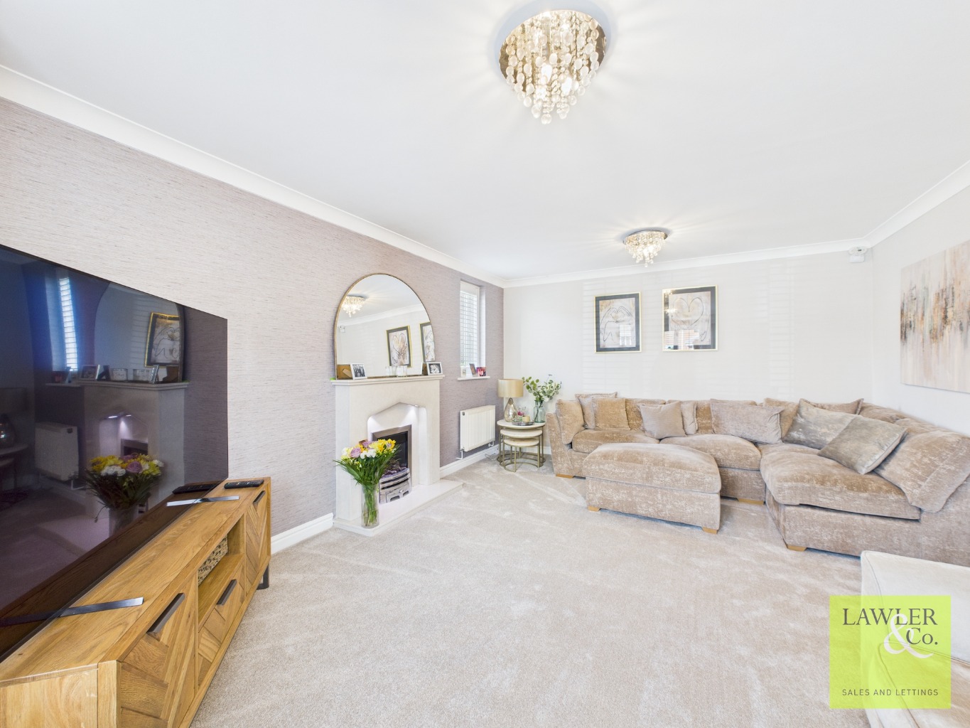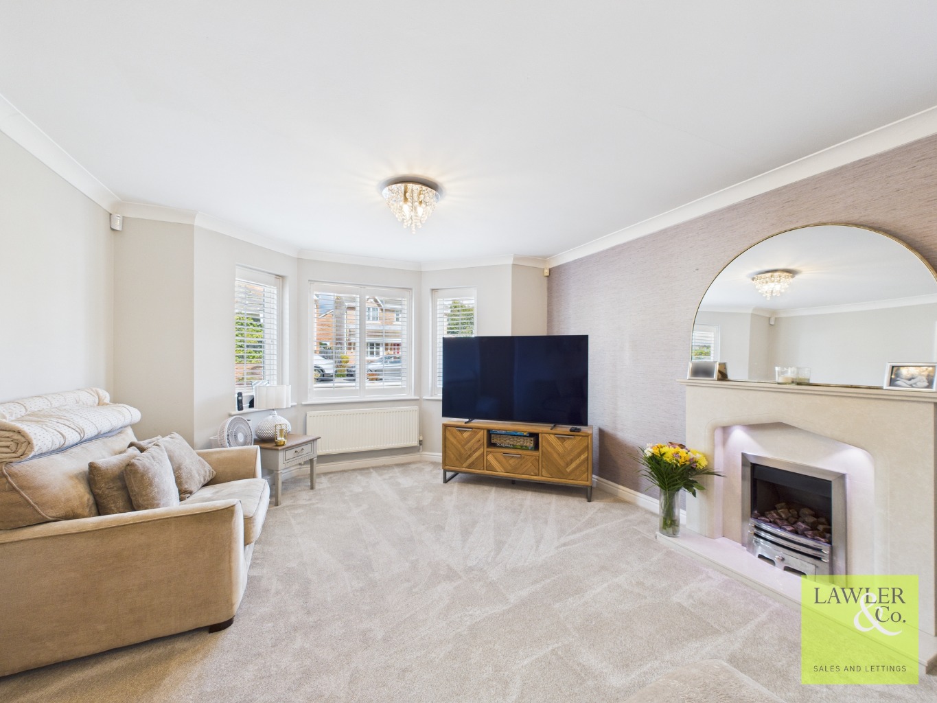 Step through the front door and prepare to be impressed. The entrance hallway leads into a spacious lounge, filled with natural light thanks to bay windows fitted with shutter blinds, and centred around a charming feature fireplace a perfect spot to relax and unwind.