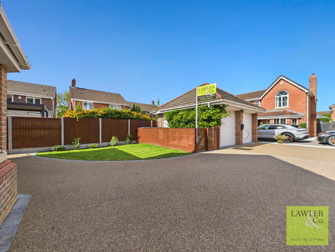 From the moment you arrive, the property stands out with real curb appeal. A resin driveway provides parking for multiple vehicles, accompanied by a double detached garage with electric doors and a well-maintained front lawn, all setting the tone for the quality found inside.
