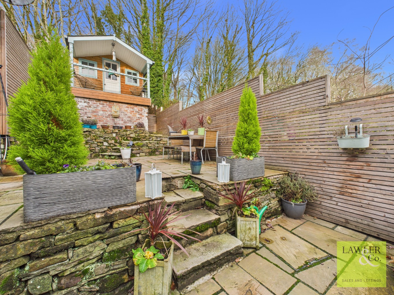 • TIERED REAR GARDEN WTH OUTBUILDING AND ELECTRICITY