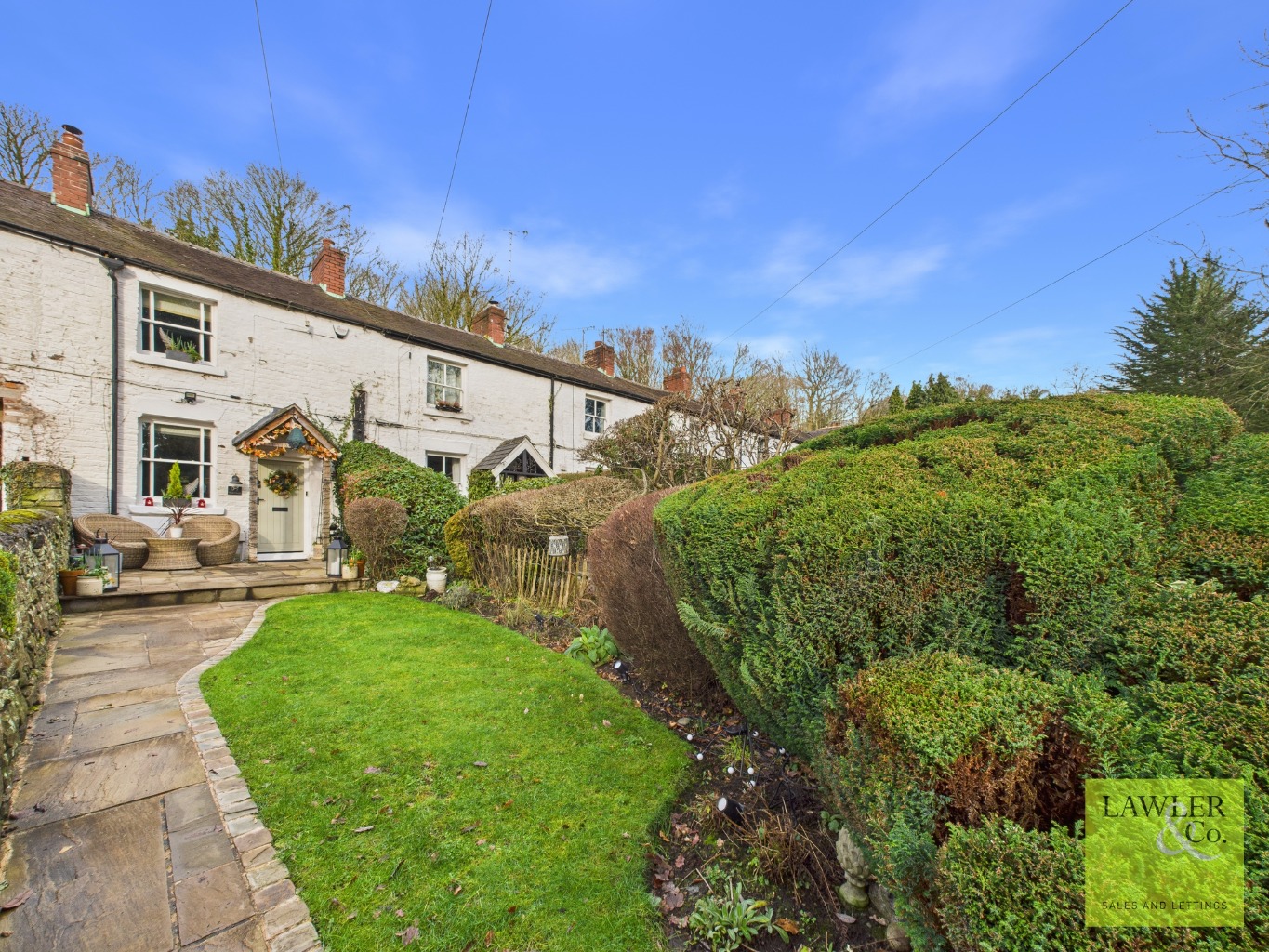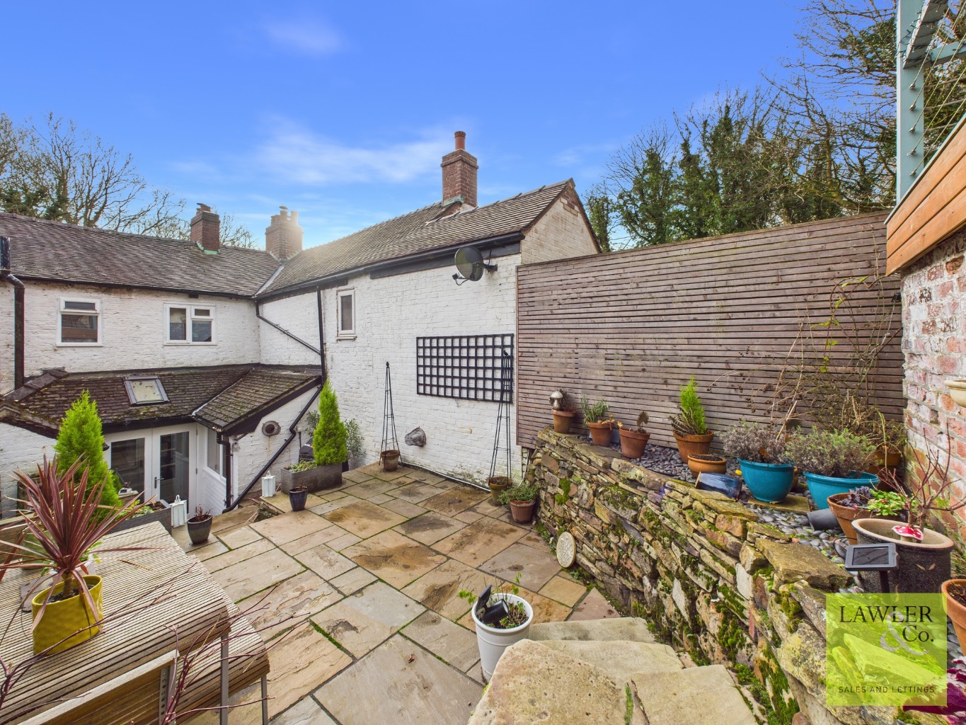 STUNNING AND CHARACTERFUL EARLY 1800’S MINERS COTTAGE-In a sought after semi-rural location close to Poynton Village. Off road parking, tiered garden with outbuilding and electricity , lounge with log burner, modern kitchen, utility and WC, two bedrooms, serene front garden with stream through.