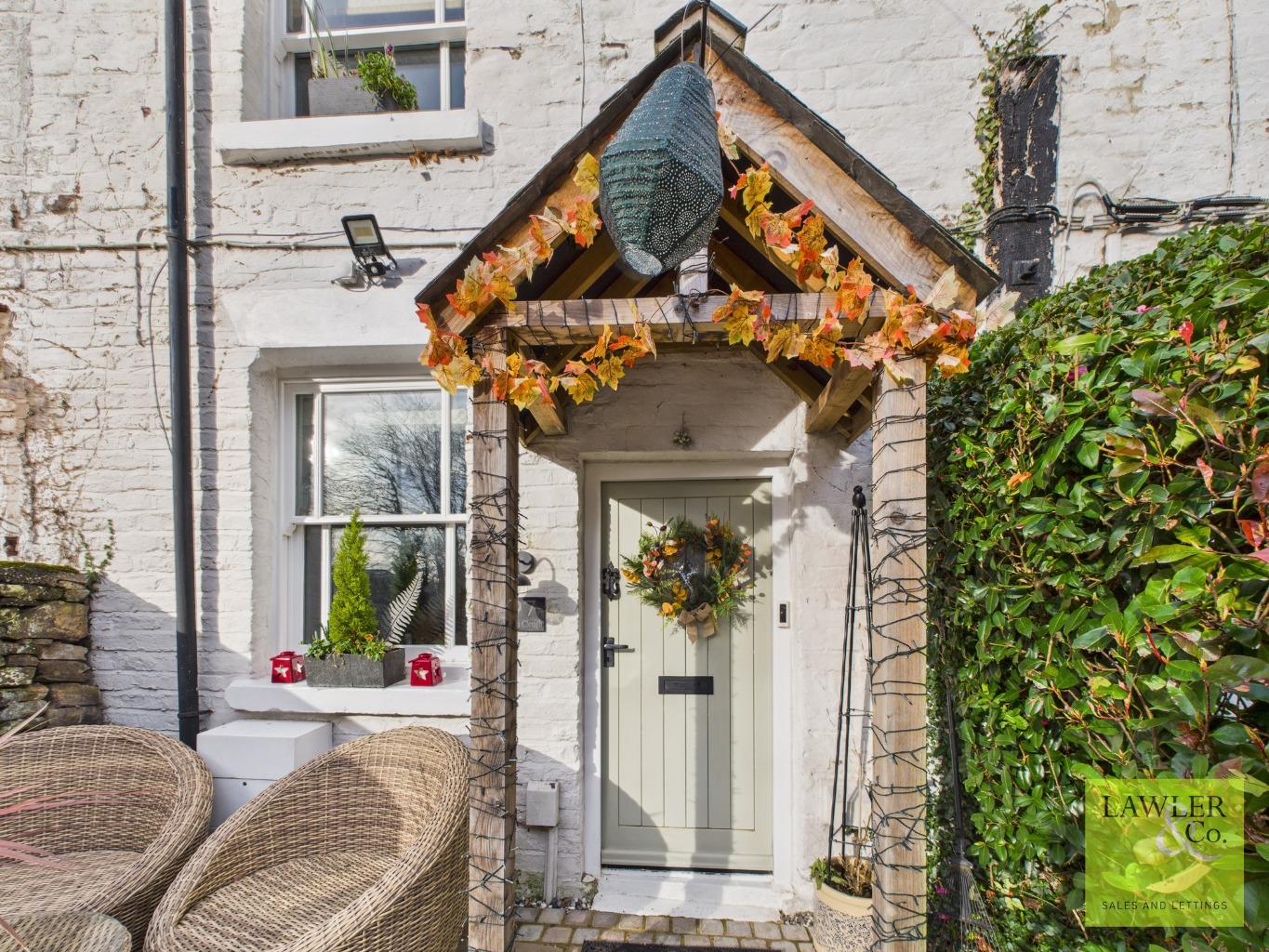 Step through the charming picket fence and follow a serene walkway that leads you to the front door. A peaceful stream alongside, crossed by a bridge, setting the tone from the moment you arrive. The path continues past a lawned garden framed by mature borders leading onto the front of the cottage.